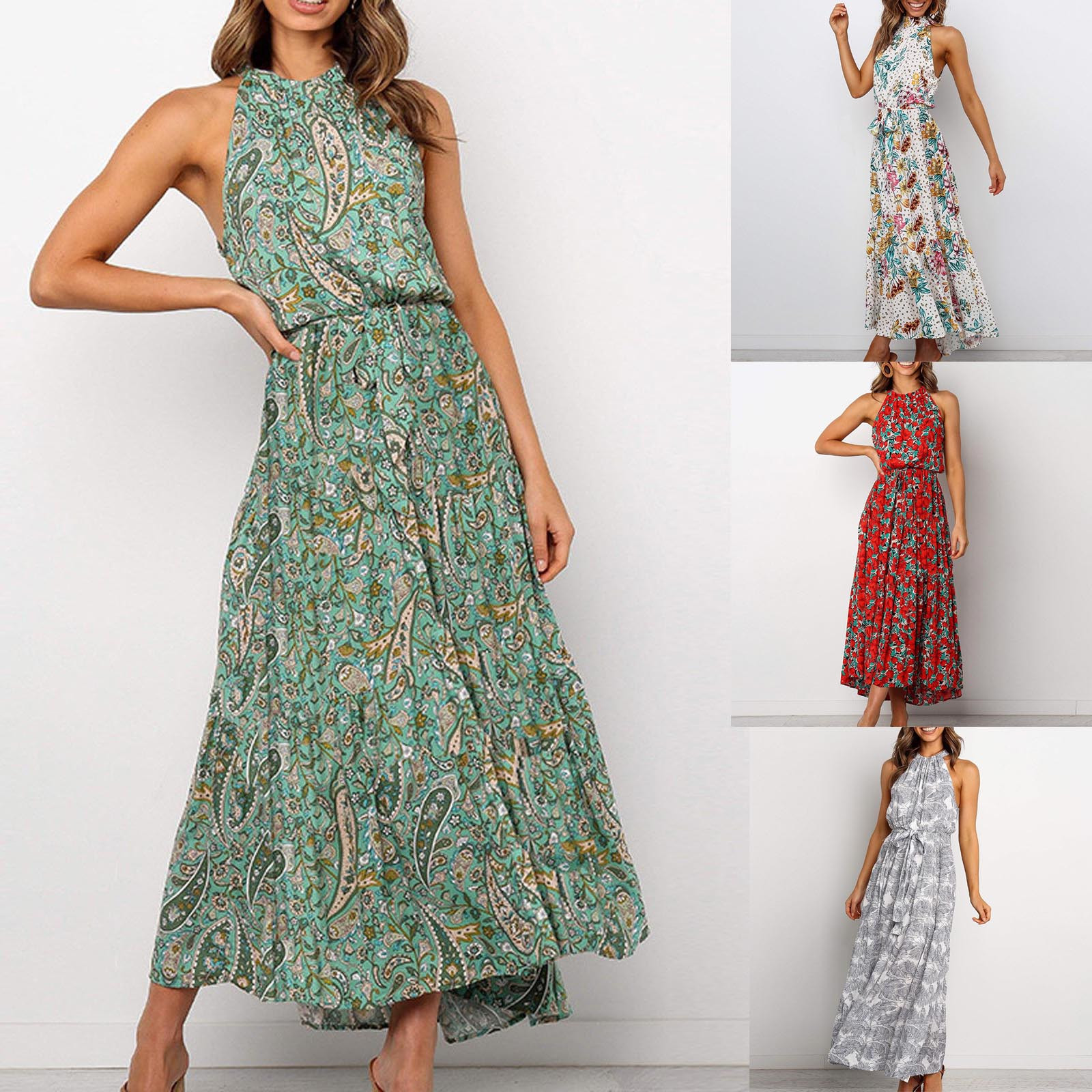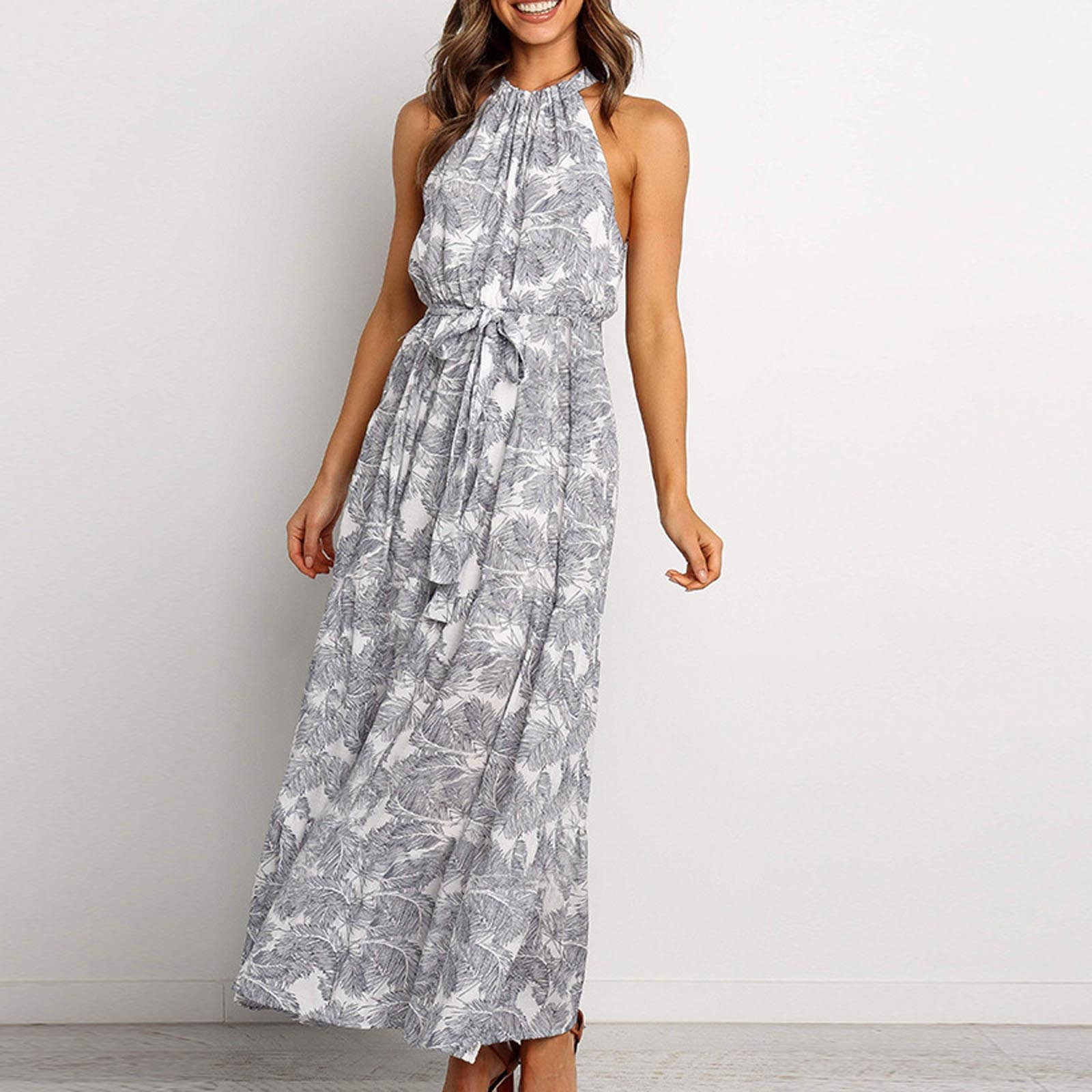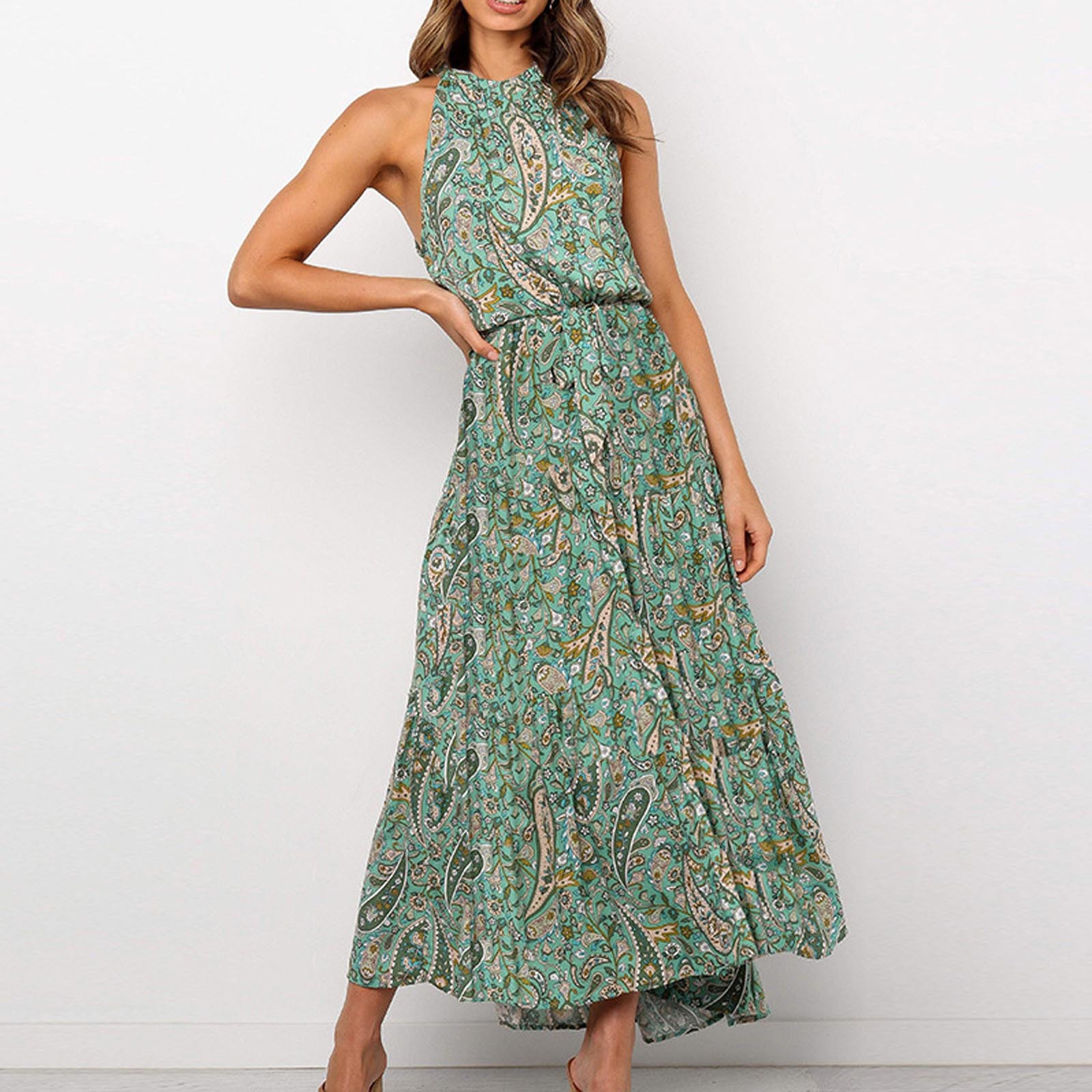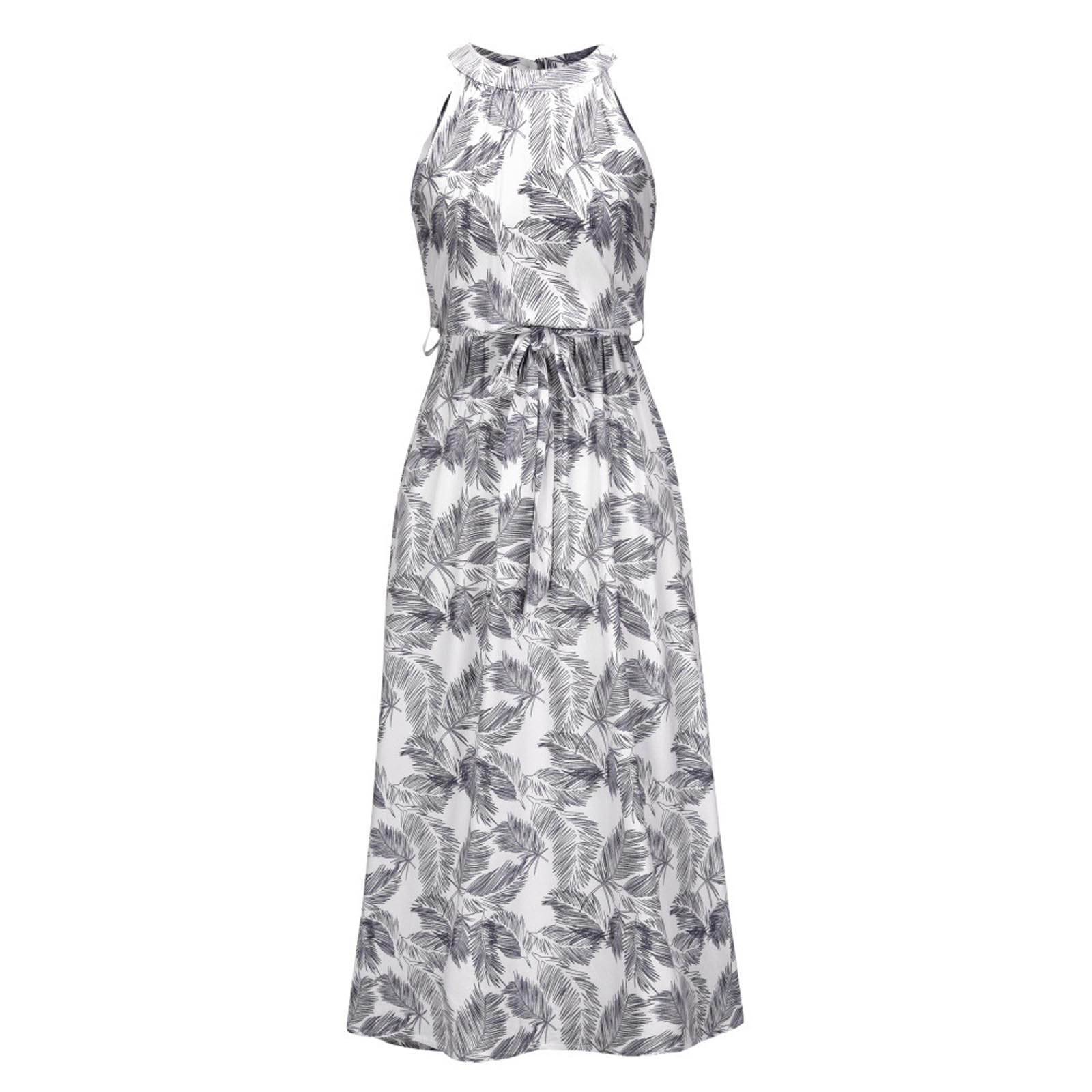 Модное женское летнее платье с принтом, длинное платье без рукавов с цветочным принтом