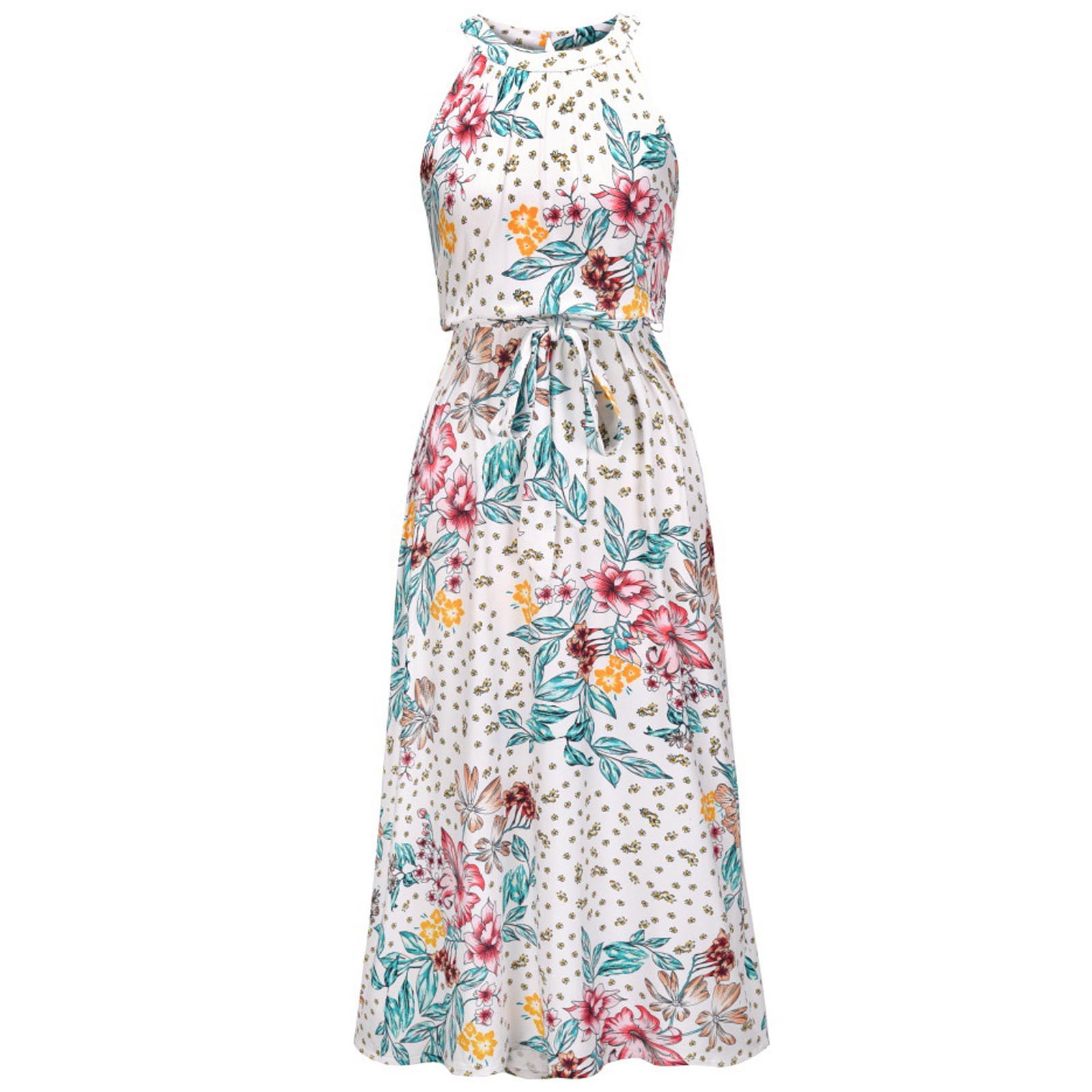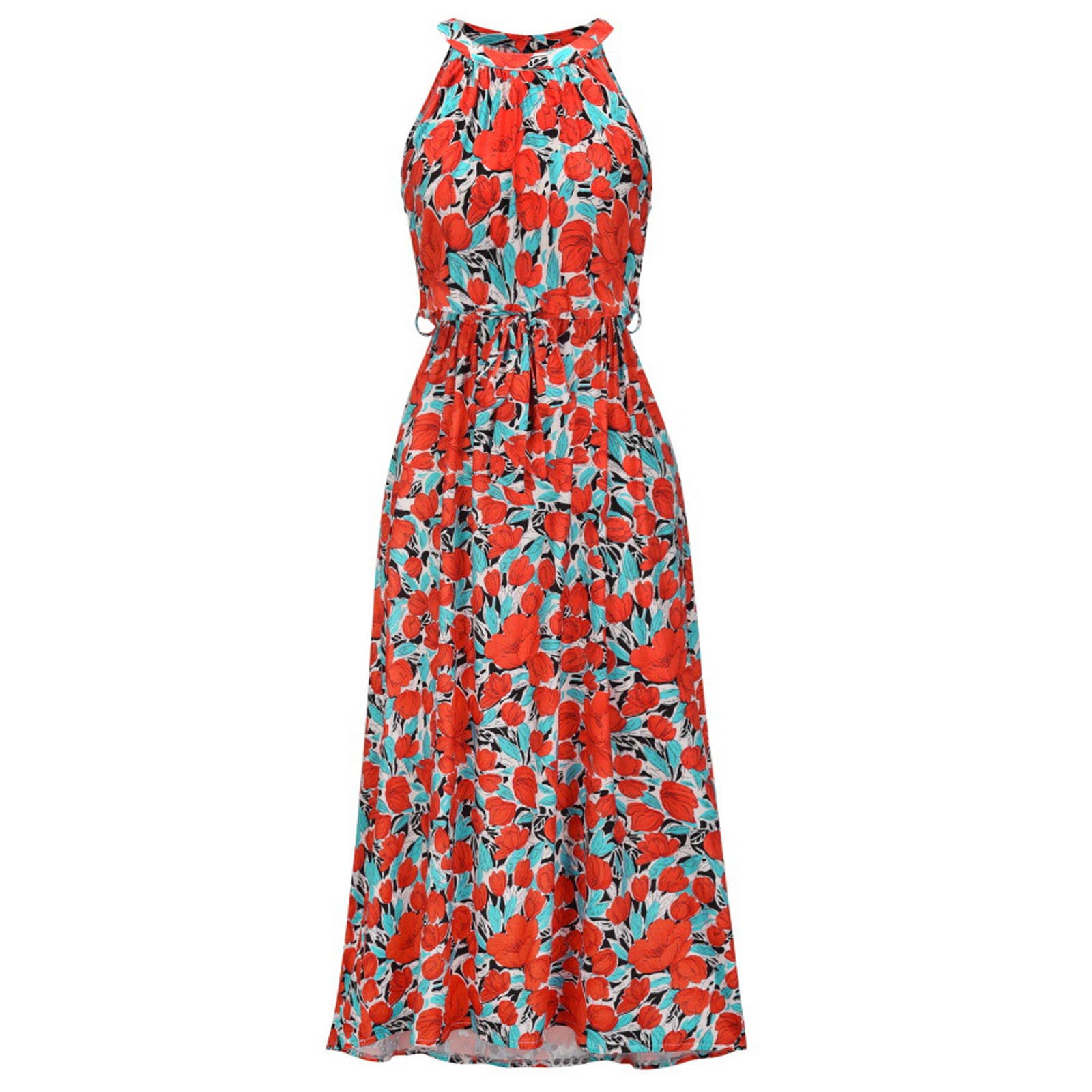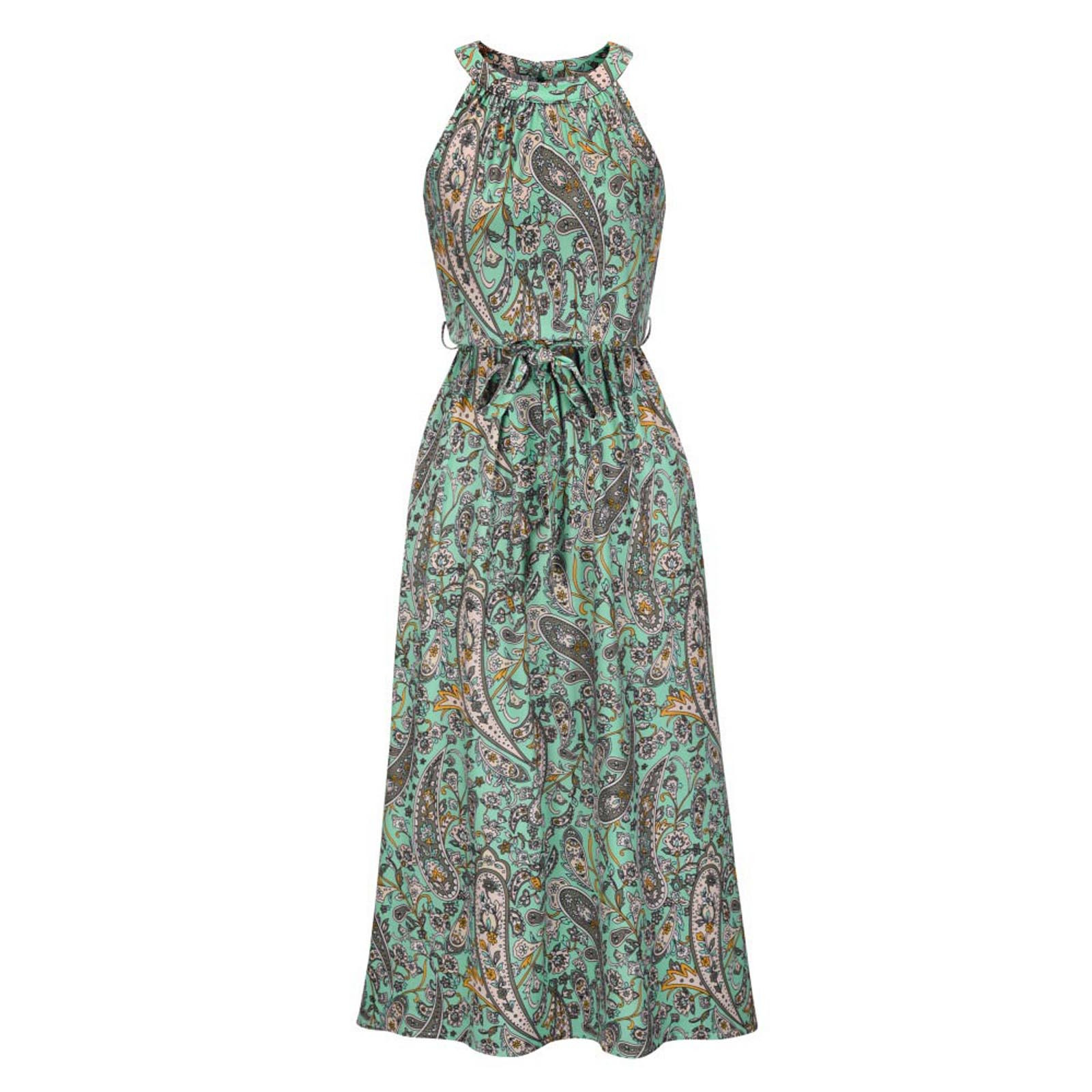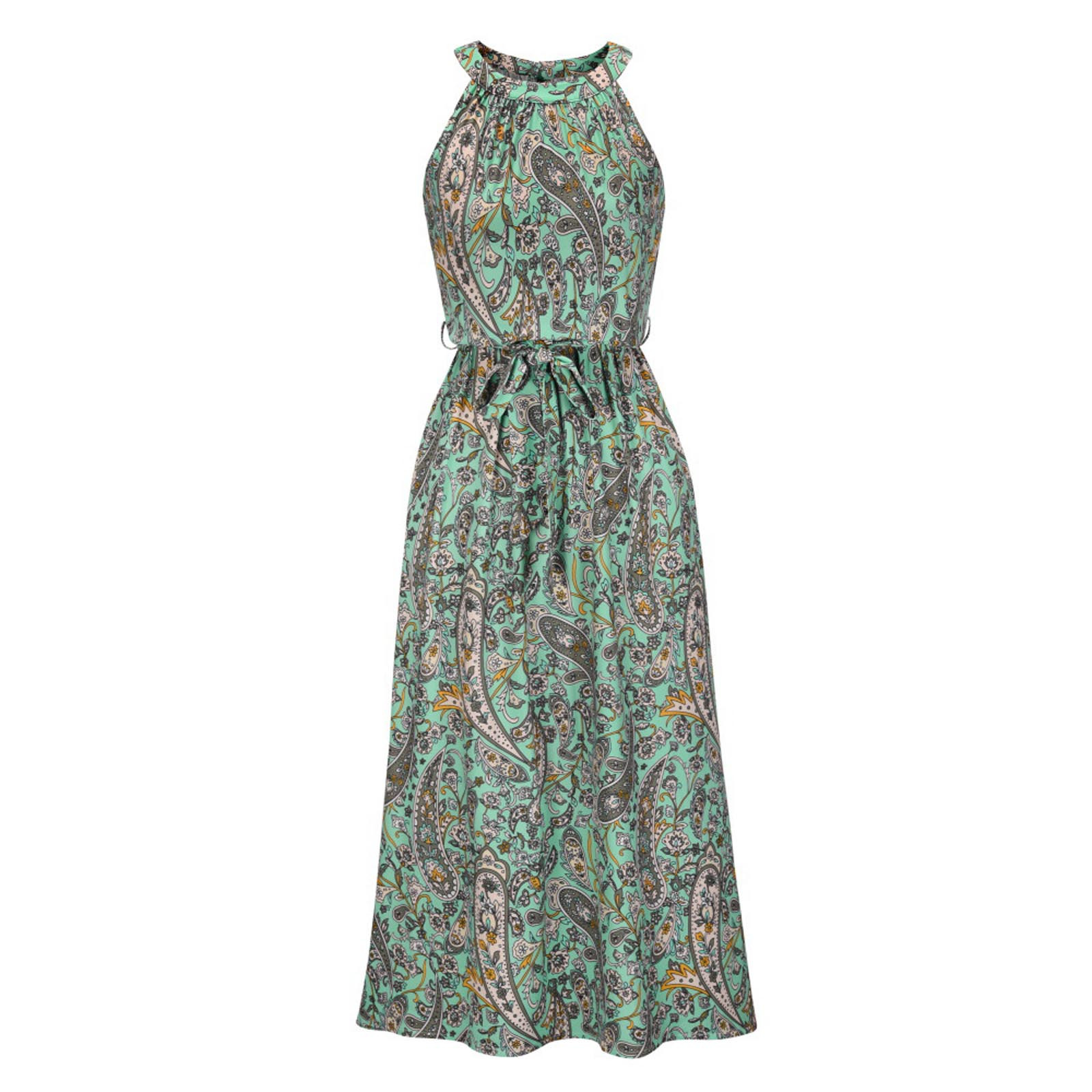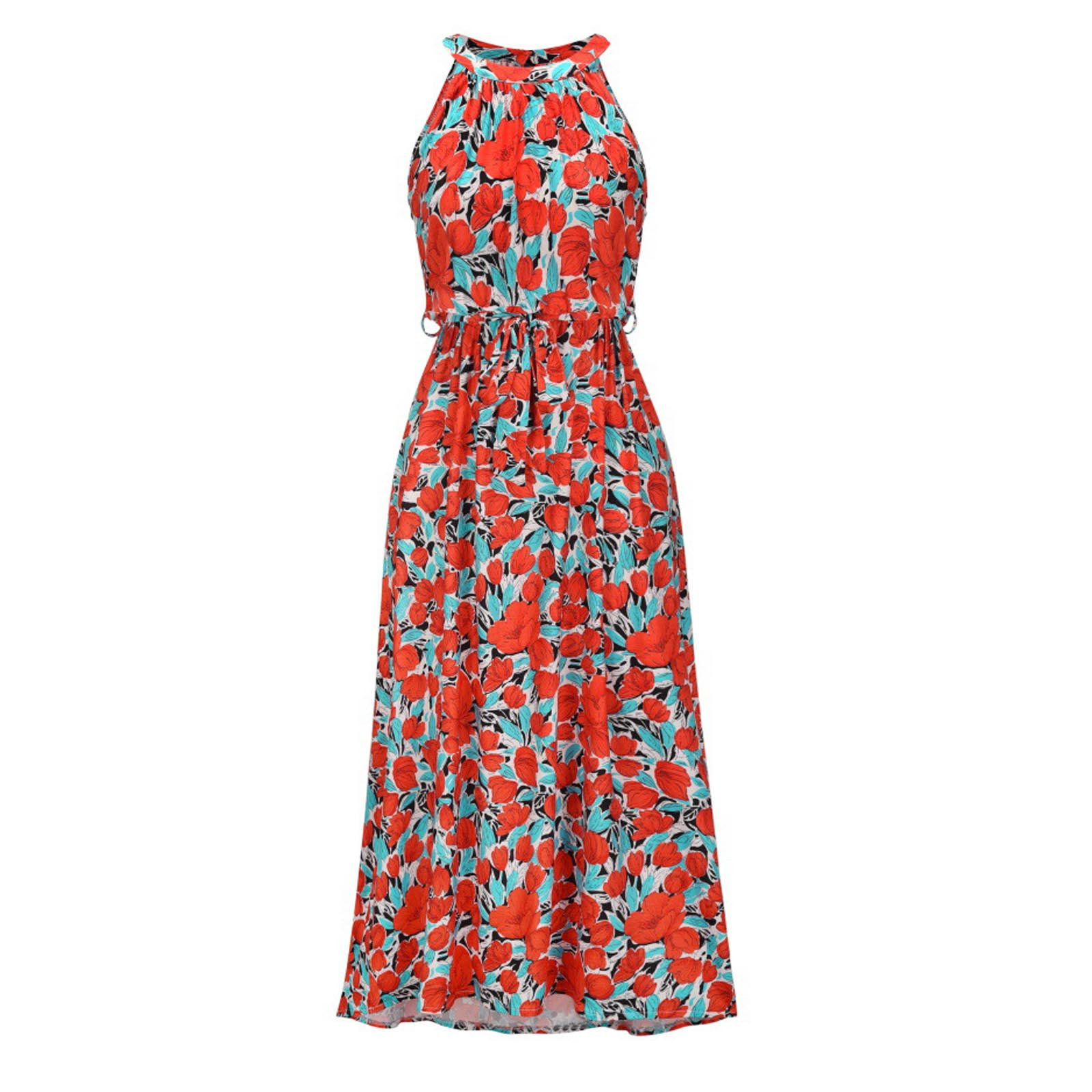 Модное женское летнее платье с принтом, длинное платье без рукавов с цветочным принтом