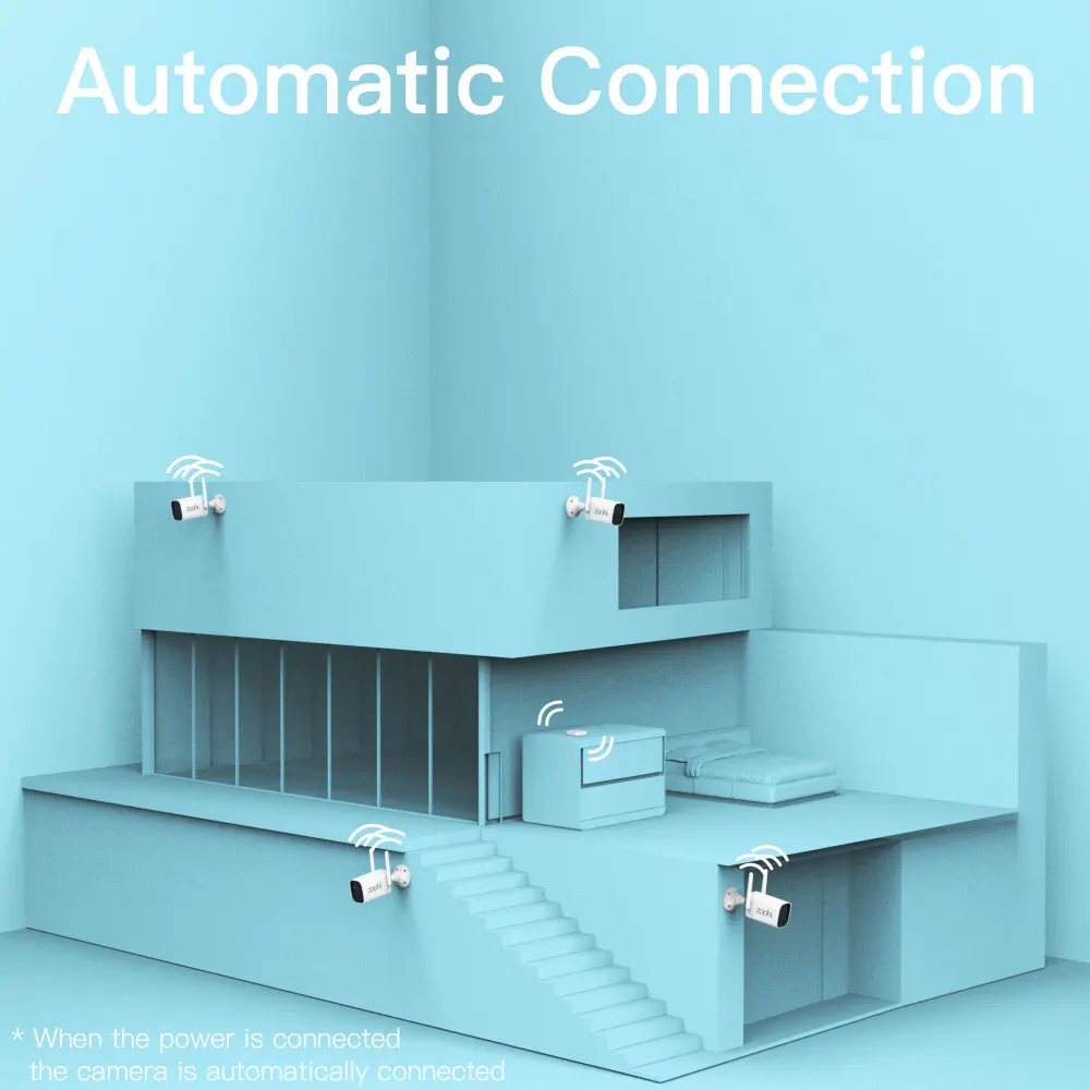 Система камеры безопасности автоматически соединяет камеры безопасности с мини NVR рекордером, нет необходимости подключать любые видеокабели от камер к мини NVR видеорегистратор.