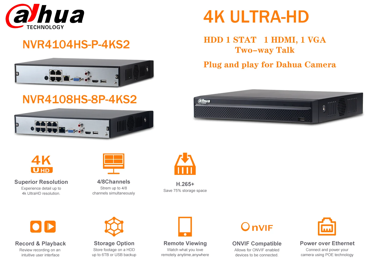 Dahua 4K 8MP NVR4104HS-P/4108HS-8P-4KS2