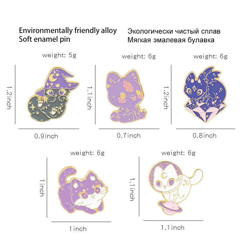Товар: Эмалированная булавка в виде маленького кота звездного неба, броши с изображением ведьмы, животных для женщин, милый отворот, булавка, рюкзак, фиолетовый значок, ювелирное изделие, подарок