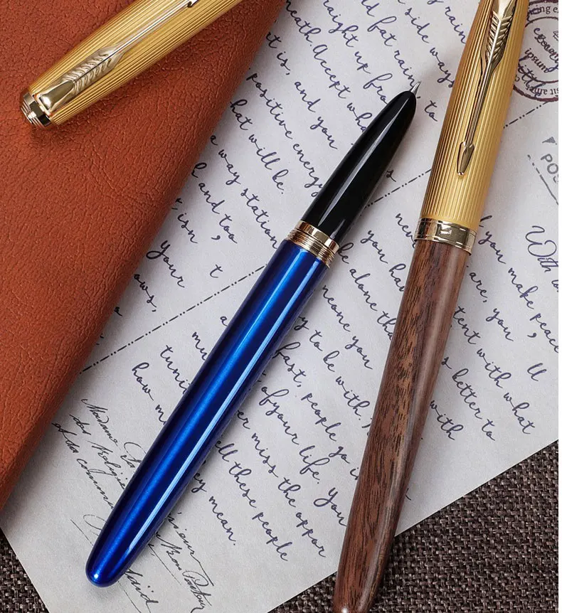 Бренд: Jinhao Модель: 85 Цвет: сталь, черный, прозрачный синий, винно-красный, розовое дерево, красное дерево Метод поглощения чернил: вращающиеся чернила поглощающие, чернильный мешок может быть использован Вес грамма: 25,5g Размер изделия: 14,3 см * 1,3 см Крышка ручки: Вращающаяся крышка ручки