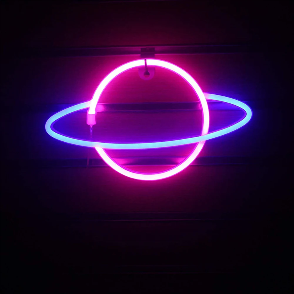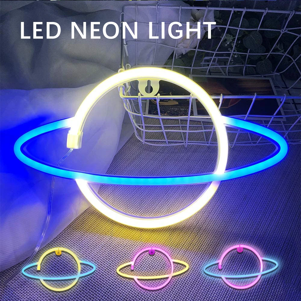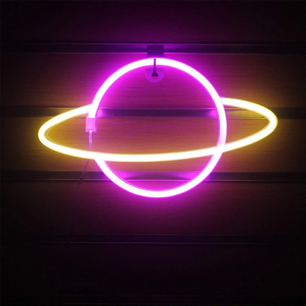 LED Neon Light Planet Shaped Sign Neon Light Battery Powered Home Decorative Wall Light Party Room Lighting Decoration