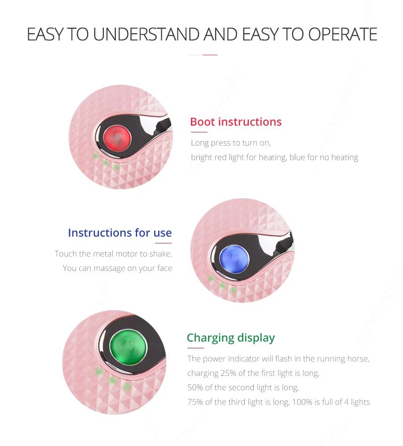 Характеристика: 【 Функция 4 в 1 Этот массажер для лица guasha используется для лифтинга лица и похудения тела, лифтинга и укрепления, поглощения питанием и акупунктурного массажа. 【 2 modes】синий Светильник обеспечивает вибрационный массаж при нормальной температуре, красный Светильник обеспечивает вибрационный массаж при теплой температуре. 【Инновационная технология 】 2 цветной светодиодный светильник терапия, микро-валюта и высокая частая вибрация, устройство делает идеальный помощник красоты кожи. 【Эргономичная Форма 】 Массажная доска, окруженная 360 °, заботится о каждом углах тела, массаже лица и тела. 【Сильная функция 】 12000rmp Вибрация для импорта питания, этот массаж лица используется для удаления морщин, лифтинга и укрепления, похудения лица и похудения тела. 【Perfect gift】разработан в удобном размере, с множеством функций, этот портативный массажер для лица guasha является идеальным подарком для семьи, друзей, влюбленных и многого другого.