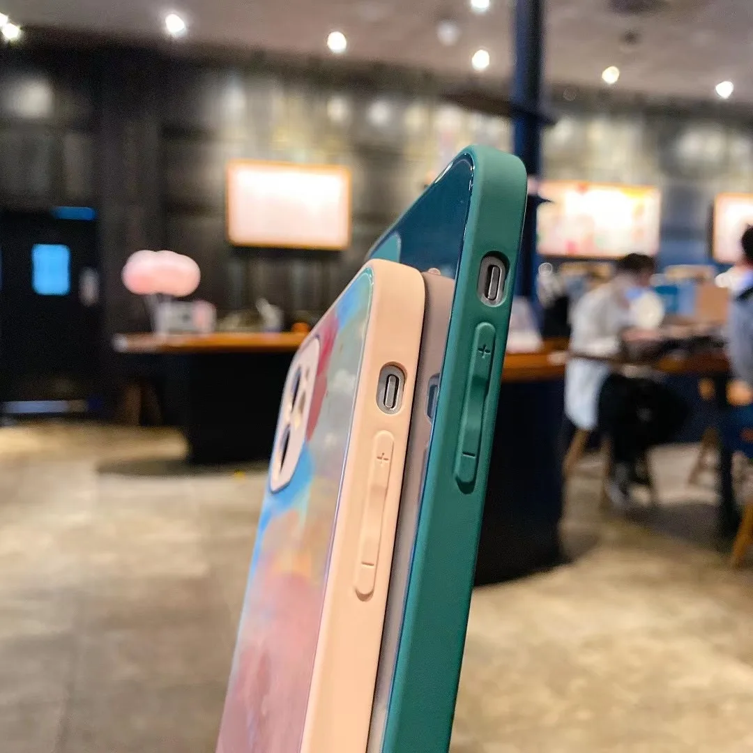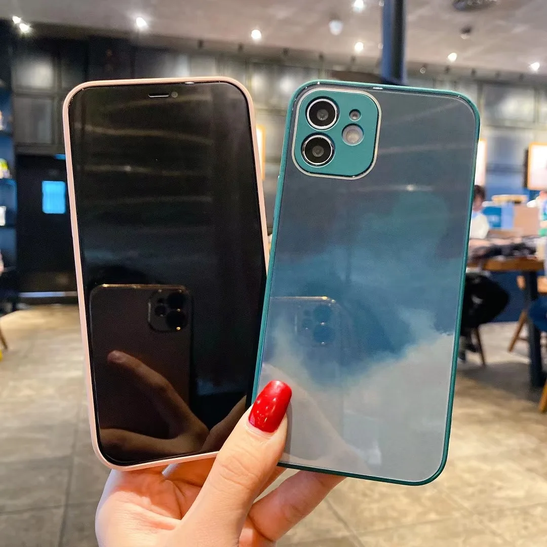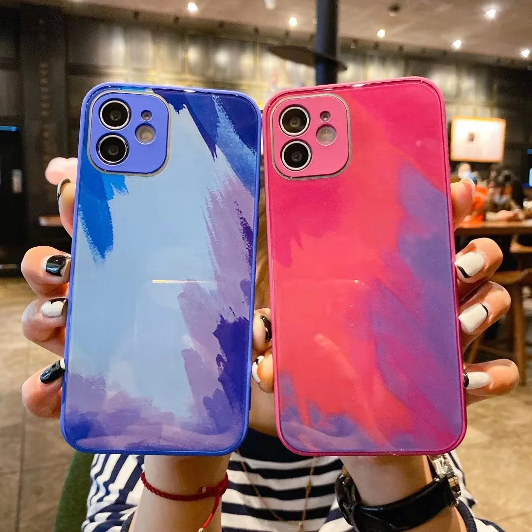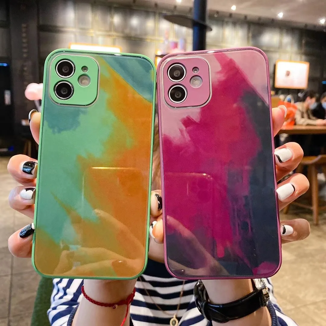 Роскошный стеклянный чехол с градиентной краской для 12 11 Pro Max, блестящее стекло Sillicone, защитная кнопка для объектива 7 8 Plus X XR XS mini Cover