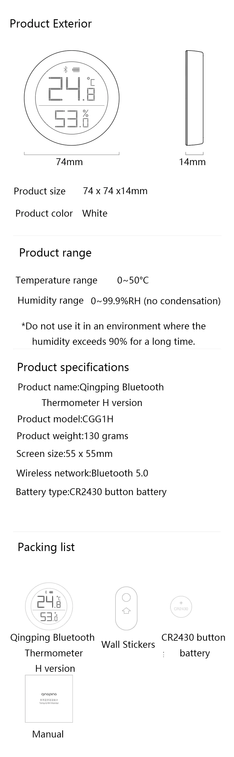 Название продукта: Bluetooth термометр ClearGrass и гигрометр lite