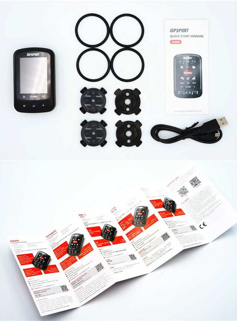 Посылка включает в себя: устройство iGS618, кабель Micro USB, стандартное Крепление для велосипеда, руководство пользователя