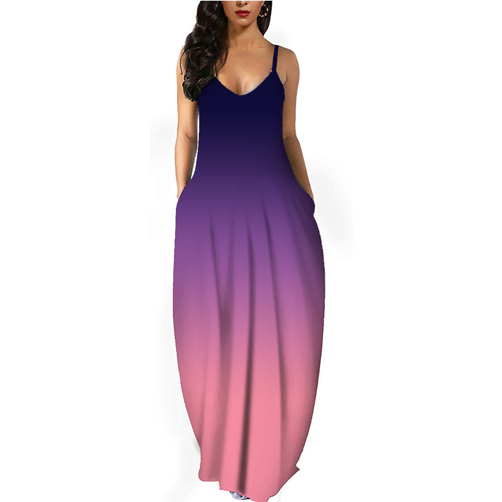 Для женщин тай-дай платье без рукавов с v-образным вырезом, платья-Макси Вечерние Платье Повседневное Открытое платье без рукавов Пляжное длинное платье