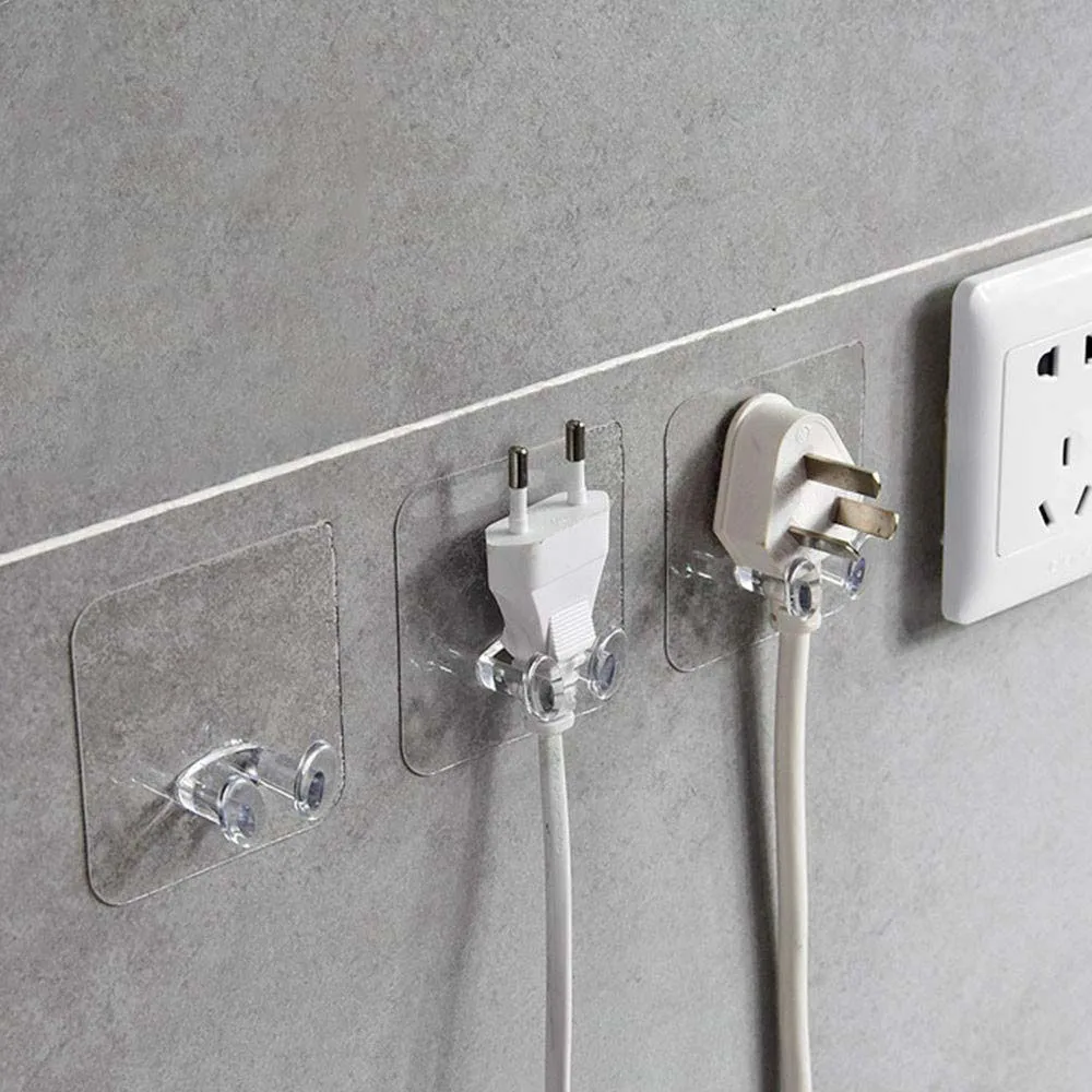 Спецификация: 1. Анмэ продукта: настенный крюк для хранения 2. Материал: пластик 3. Цвет: прозрачный 4. Размеры: около 6,5*1,5 см Особенности: 1. Нет следов клея. Хорошая адгезия и прозрачный дизайн. 2. Крючок универсален и может использоваться для подвешивания мелких предметов. 3. Подходят как двухфазные, так и трехфазные вилки. Шнур питания больше не запутывается.