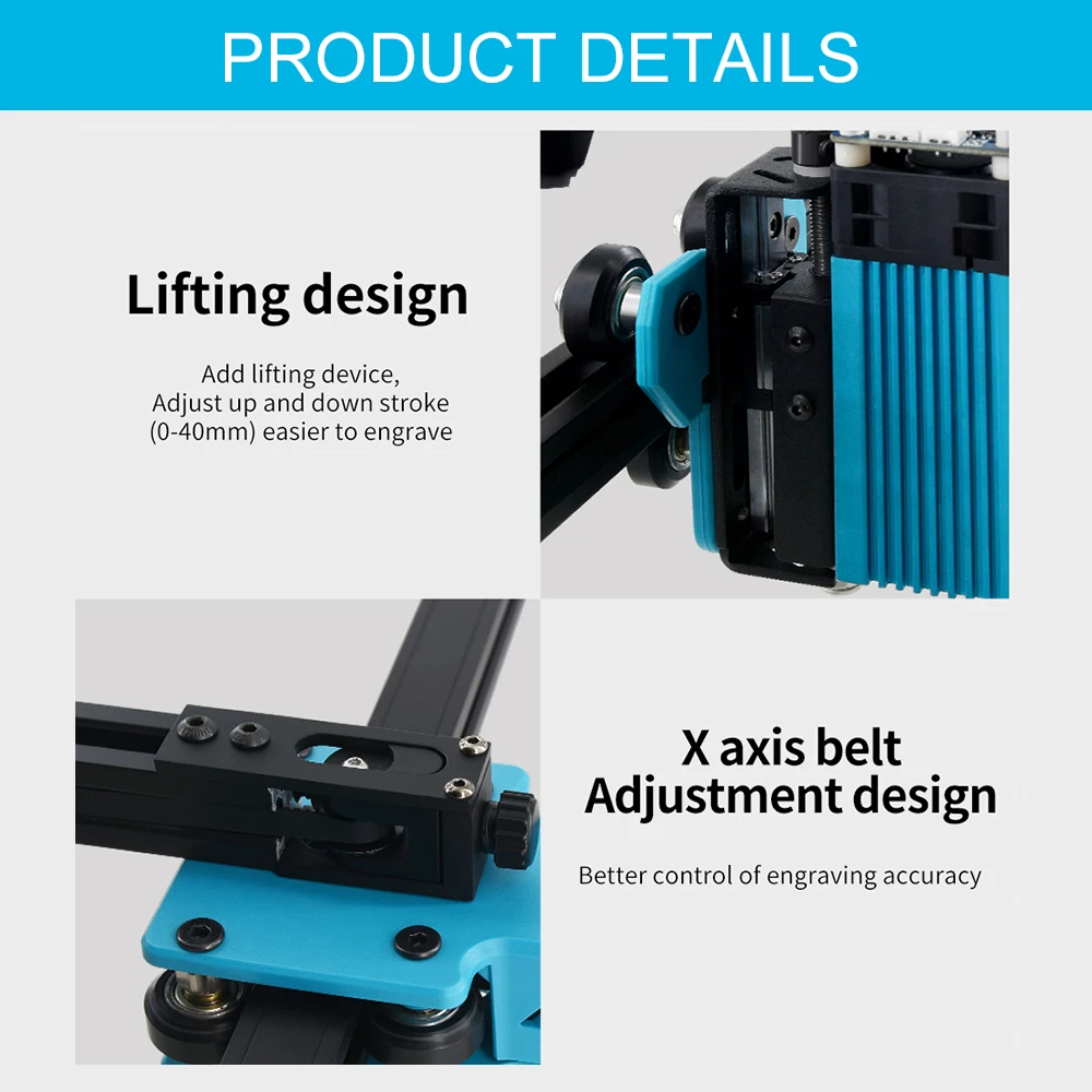 [Подъемная платформа и конструкция ремня X-axis] модернизированное подъемное устройство и конструкция ремня X-axis удобны для перемещения вверх и вниз (0 ~ 40 мм) И лучший контроль точности резьбы.
