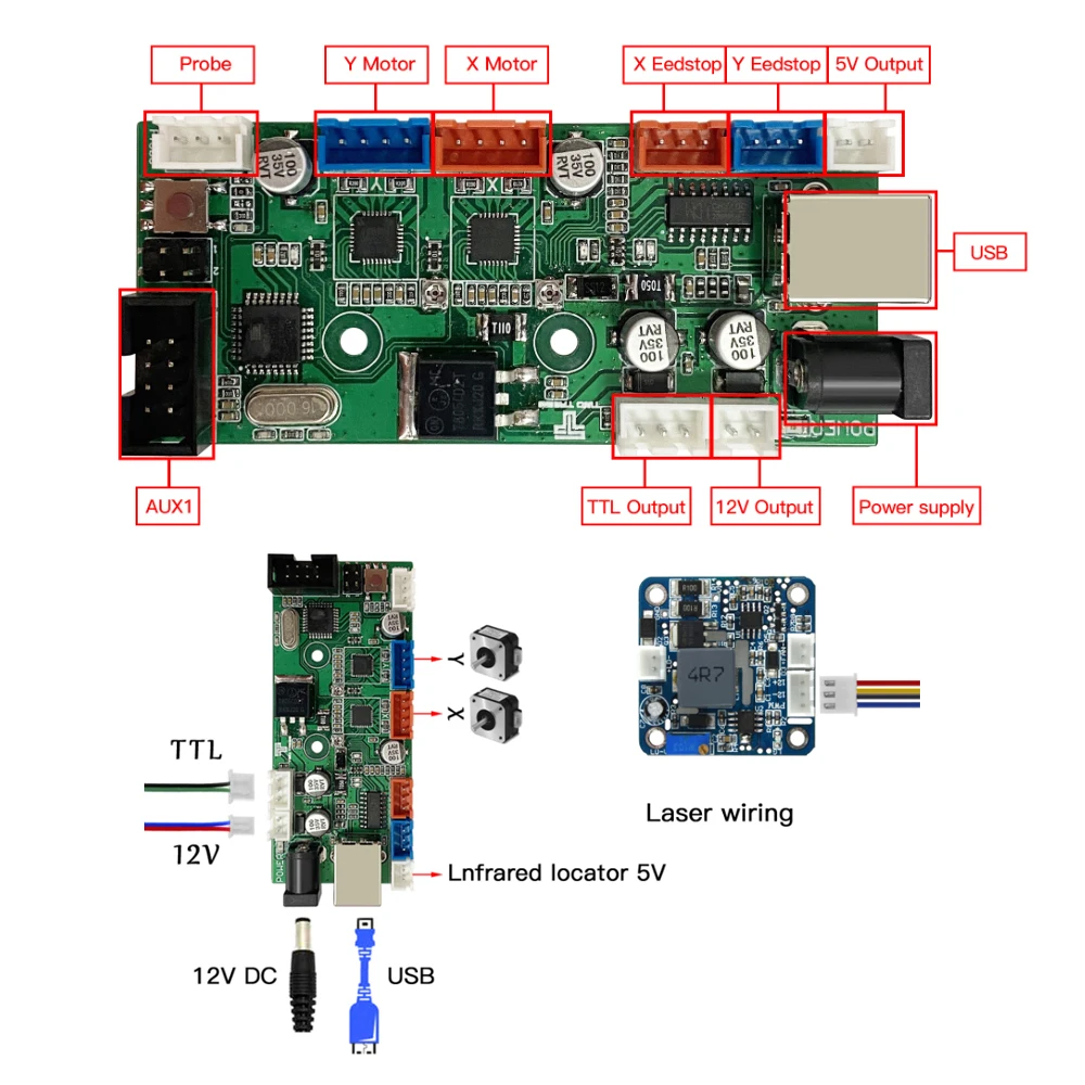 [Модуль интегрированного привода двигателя] модульная конструкция, более стабильная производительность, и три драйвера шагового двигателя могут обеспечить более высокую скорость движения, завершая гравировку высокой эффективности.