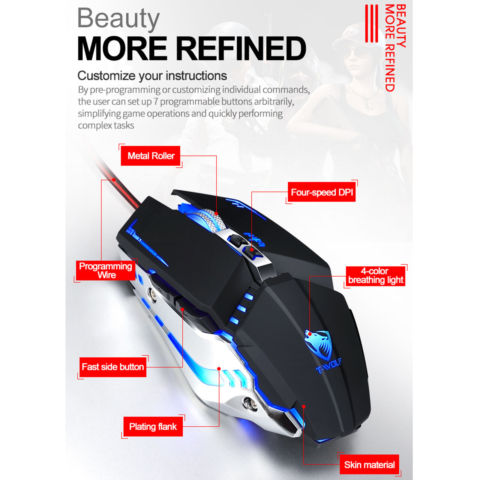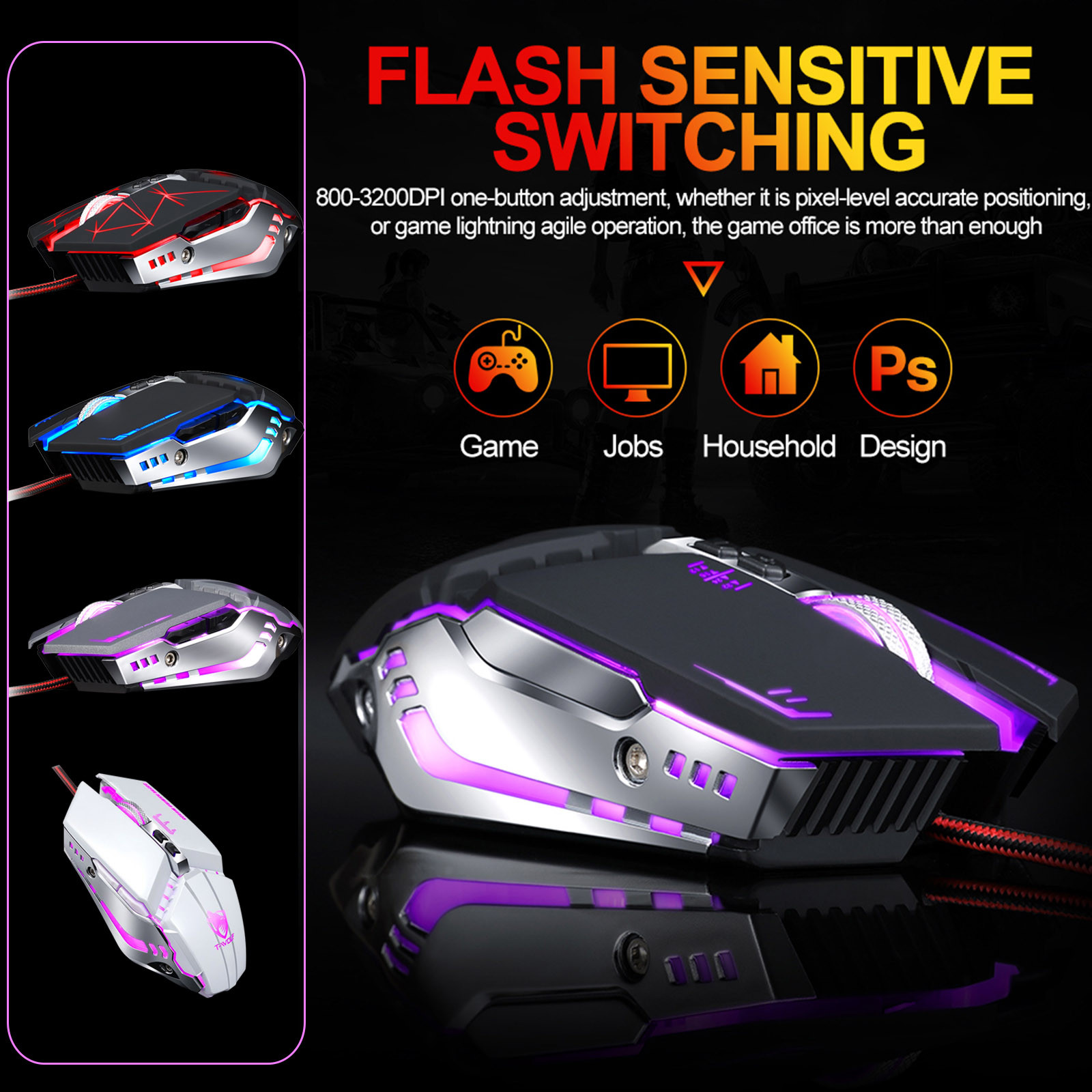 Описание товара:Триггер мыши Чувствительный, и его можно контролировать свободно и легко в игре, и Враг может быть заблокирован для удовлетворения потребностей различных игр. Поддержка 7 ‑color с зеркалом заднего вида Дышащий, яркий светильник, как Радужный, очень завораживающий. 800-3200DPI-ключ Регулировка, будь то точное позиционирование на pixel‑level или подвижная игра Управление, игровой офис прост в использовании. Мощный макро Программирование, one‑click выпуск нескольких комбинированных навыков, вы можете играть Различные игры. Обе стороны мыши Разработаны с гальваническим процессом, с полной металлической текстурой, сильной Механическое ощущение и удобное сцепление.Характеристики продукта: