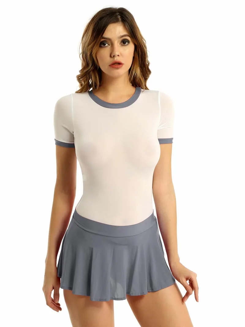 В комплект входит: 1 боди, 1 юбка Состояние: Новый без бирки Материал: нейлон, спандекс Особенности: Женское нижнее белье костюм школьницы костюм купальник прозрачный боди с рюшами мини-юбка. Комплект включает в себя круглый вырез, короткий рукав, прозрачное Боди и мини-юбку с оборками, покрывающую только половину бедер. Высококачественная ткань, эластичная, легкая, дышащая, мягкая и удобная. Отлично подходит для сна, клуб, вечерние, косплей, ночной клуб, Бальные, ролевой игры, и т. д. Пожалуйста, внимательно проверьте размер перед размещением заказа, рекомендуется ручная стирка в холодной воде. Размер: Обхват груди: 72-88 см, ширина плеч: 32 см, длина боди: 66 см, обхват талии юбки: 58-79 см/, Длина юбки: 26 см