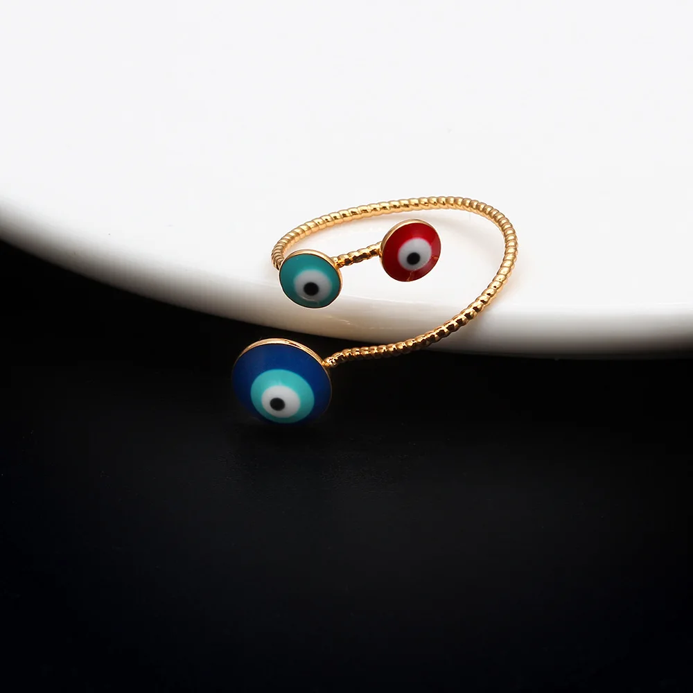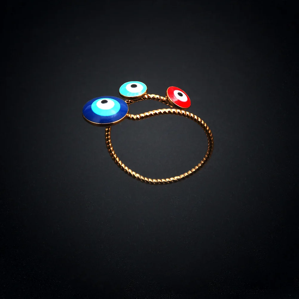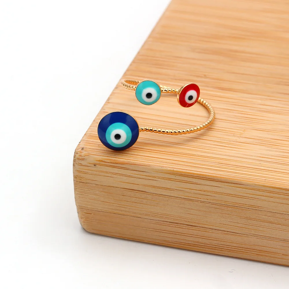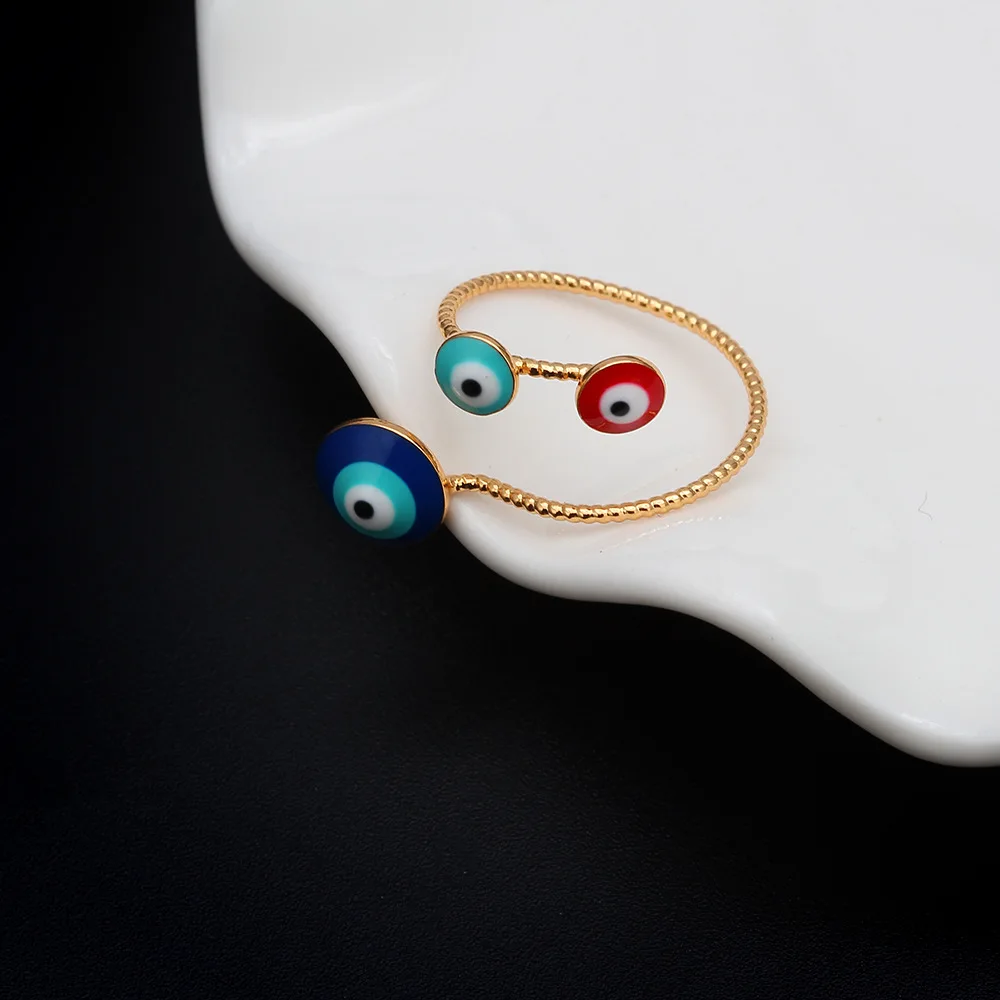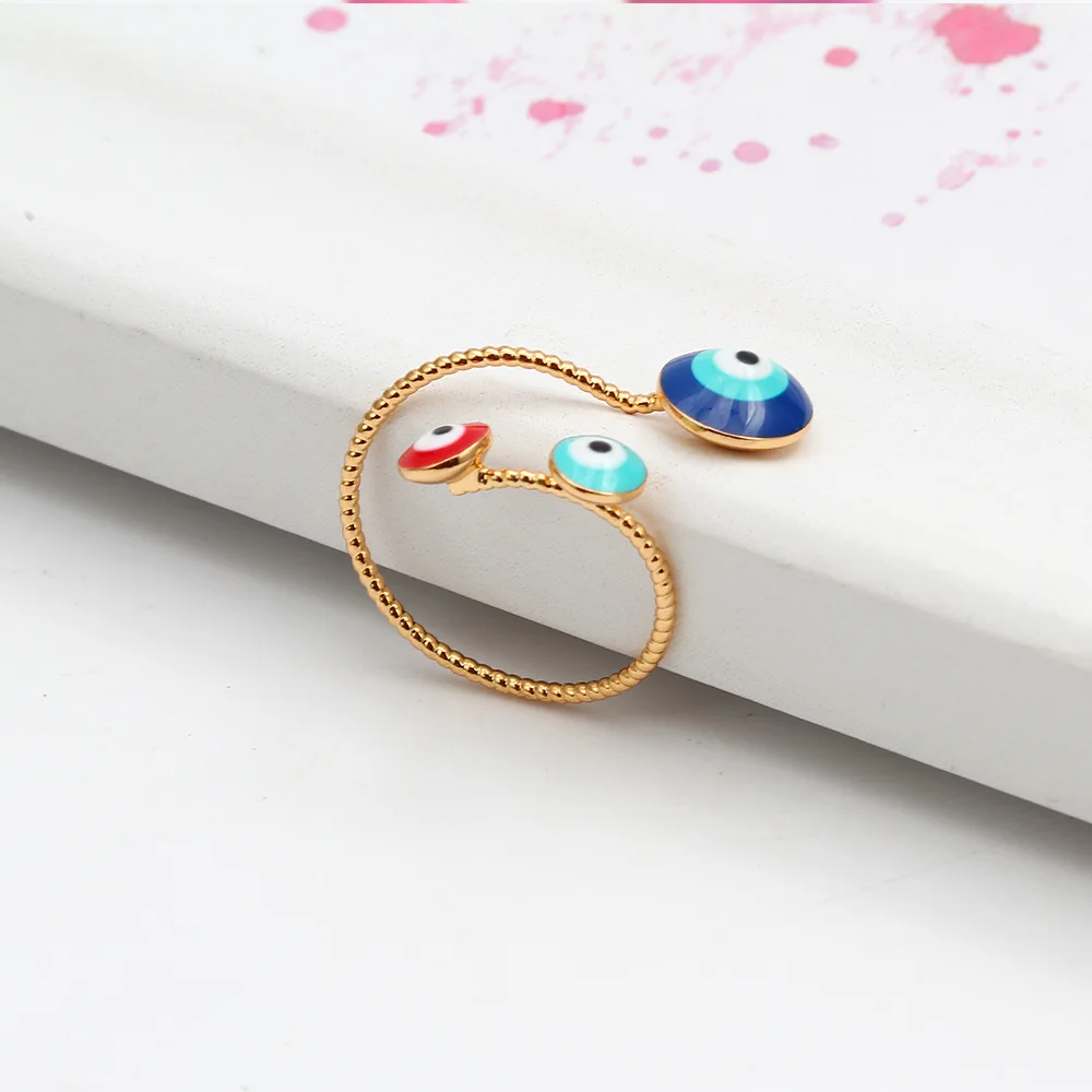 Массивные позолоченные кольца с кубическим цирконием и сглаза для женщин, регулируемые красочные эмалированные простые турецкие Модные Винтажные медные ювелирные изделия