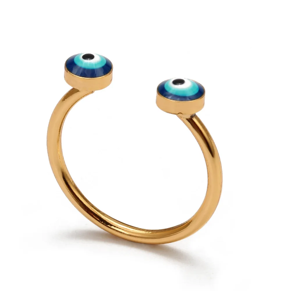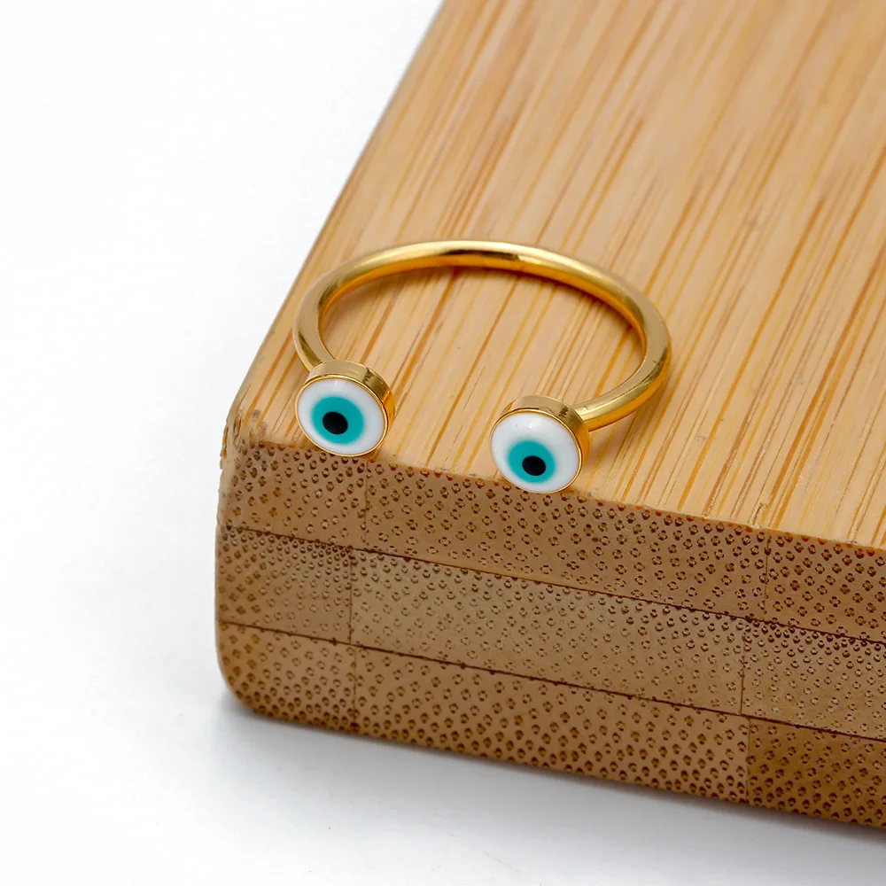 Массивные позолоченные кольца с кубическим цирконием и сглаза для женщин, регулируемые красочные эмалированные простые турецкие Модные Винтажные медные ювелирные изделия