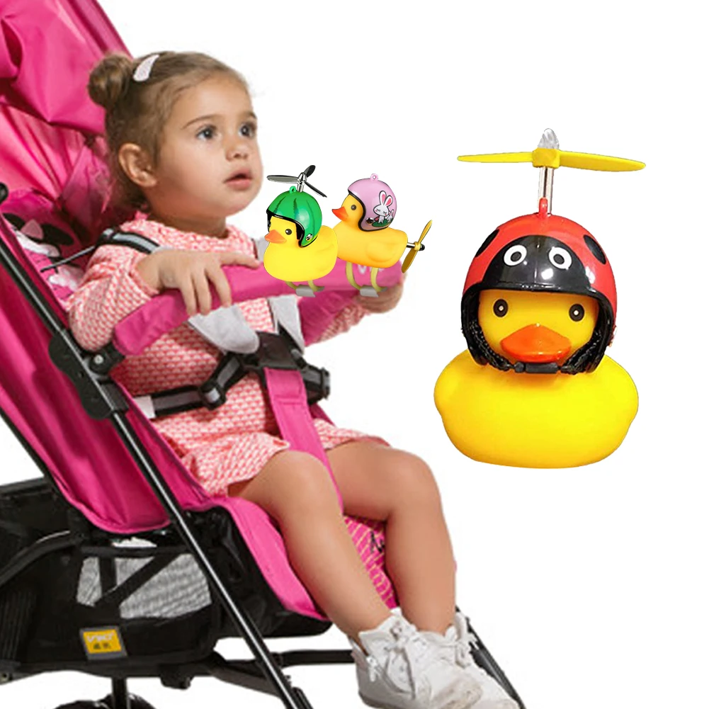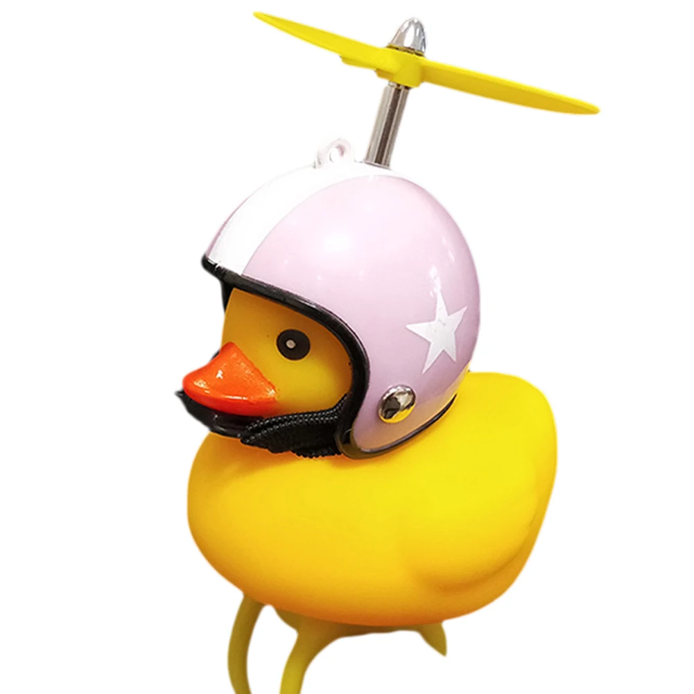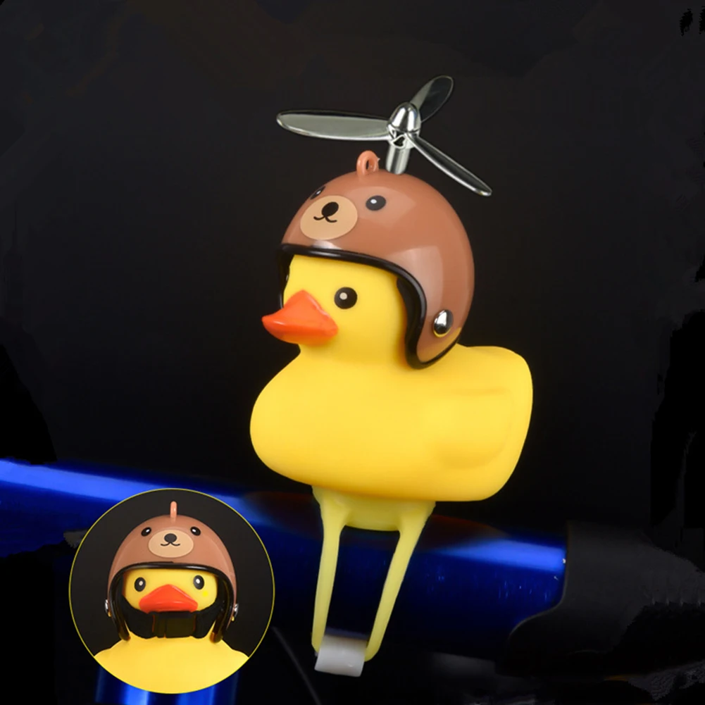 Bicycle Bell Small Yellow Duck with Helmet Horn Children Adult Bicycle Light Rubber Duck Toy for Cycling Bicycle Accessories