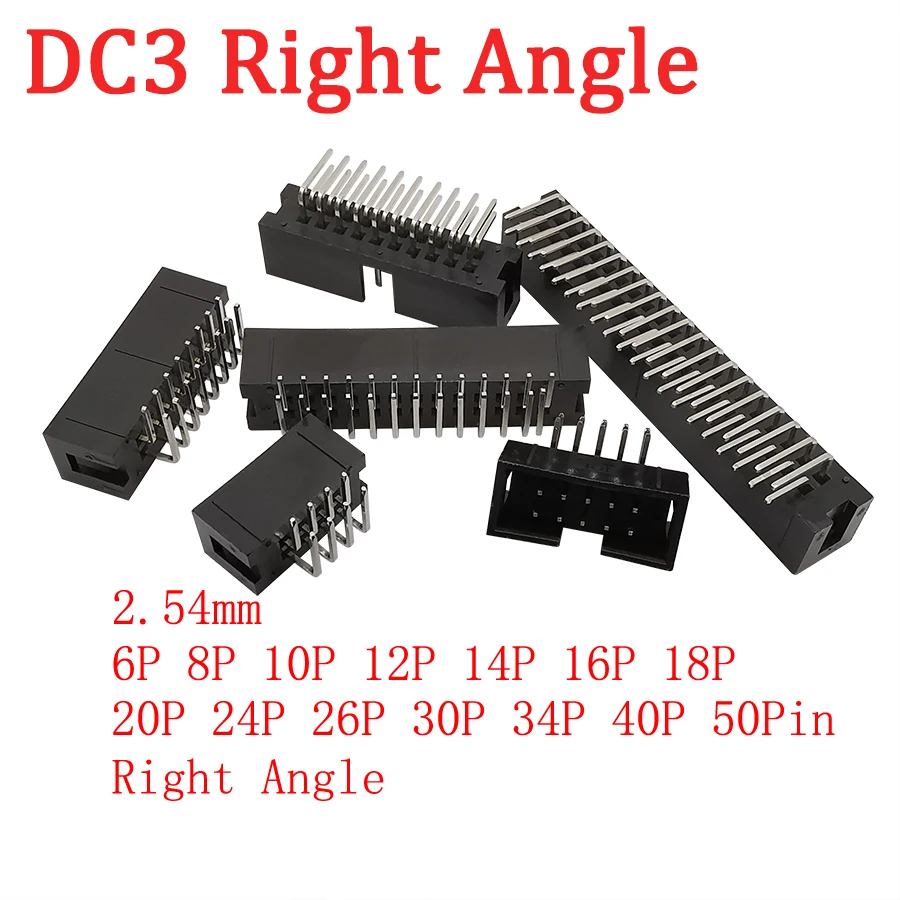 Название продукта: DC3 правый угол двухрядные 6-50P 2,54 мм ISP нижнего белья Мужской Pin IDC JTAG разъем