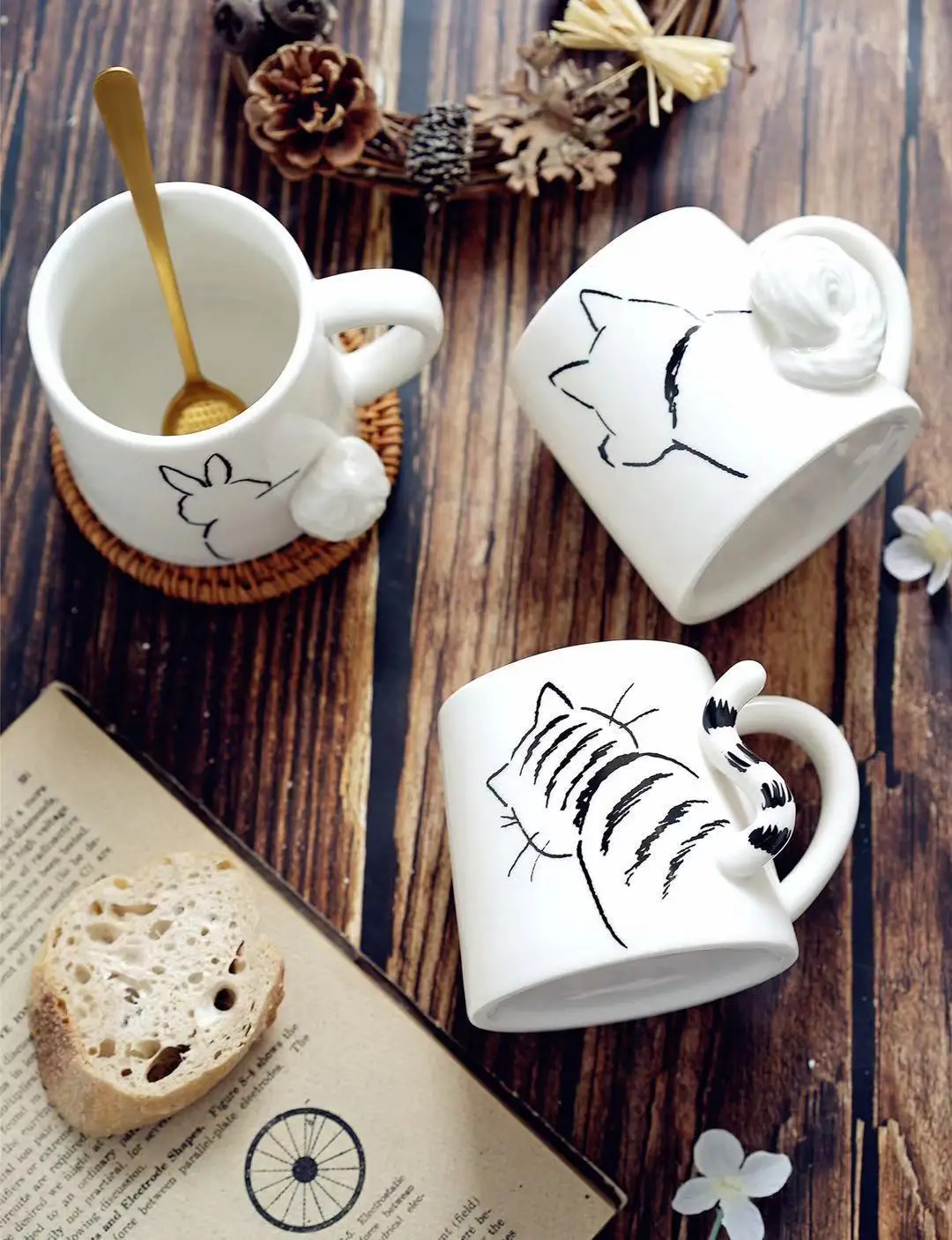 350 мл Милая керамическая кофейная кружка с рисунком кота и собаки, хвостом кролика, домашняя чашка для завтрака, чашка для молока, креативная Подарочная чашка для детей