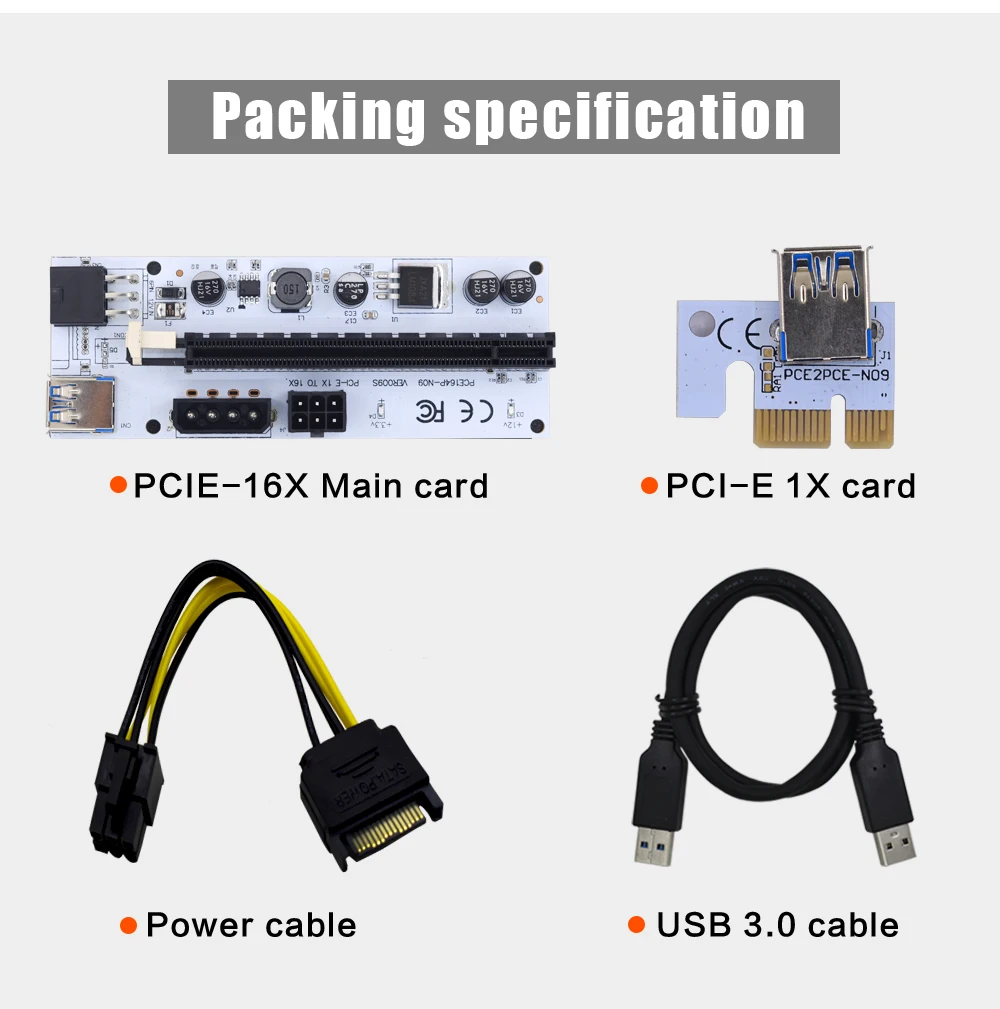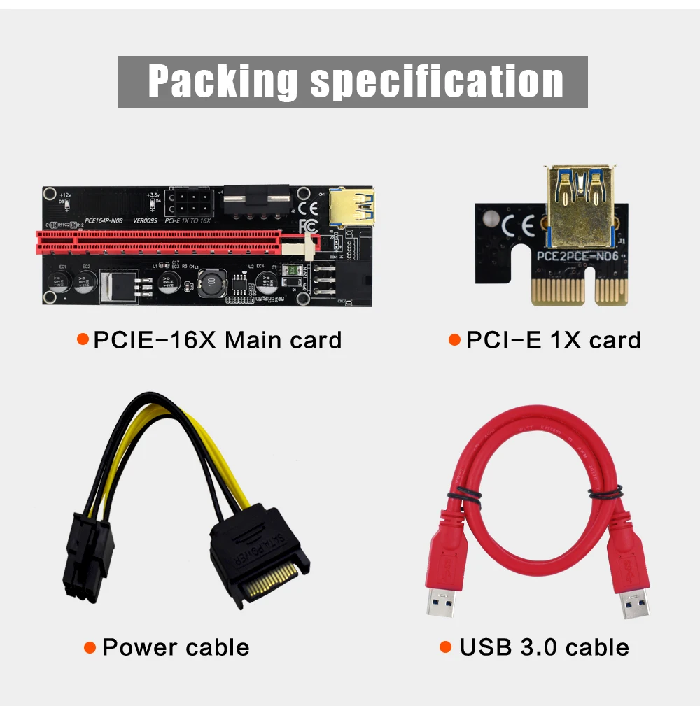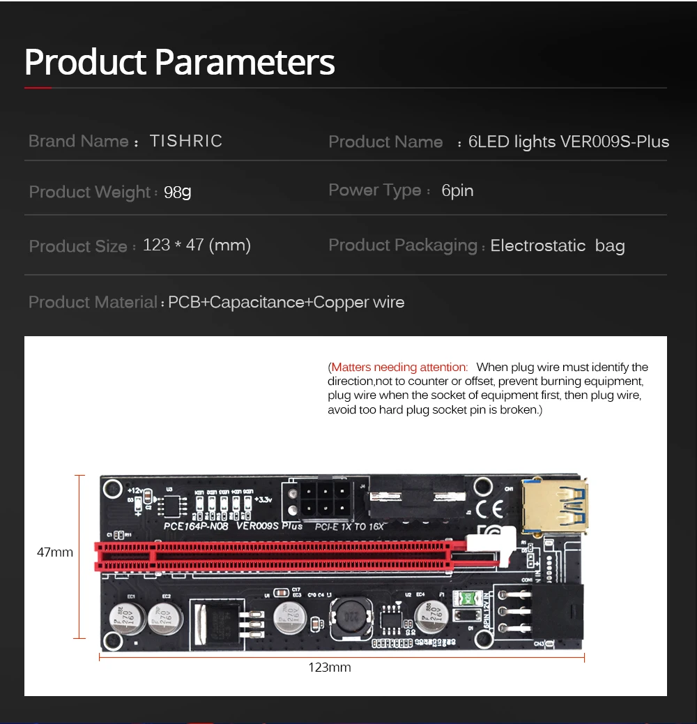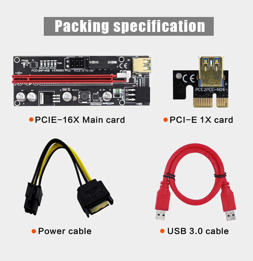 6 шт. TISHRIC gpu PCIE PCI-E Riser 009S карта PCI E X16 PCI Express 6Pin на SATA 1X 16X USB3.0 удлинитель светодиодный для майнинга ETH BTC