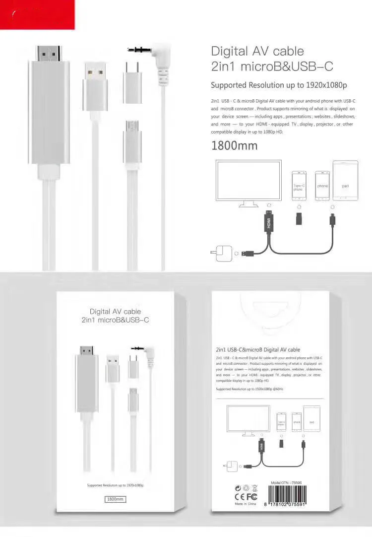 Name:2 in 1 Micro USB/Type-C To HDMI Cable