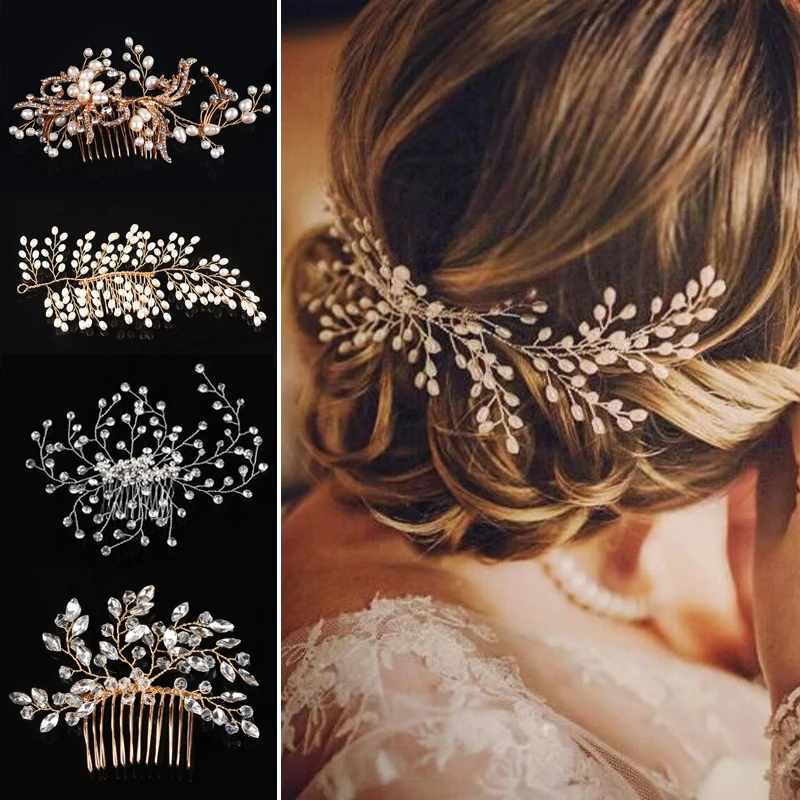 Мигающие стразы, жемчужная заколка для волос для невесты, украшения для волос, элегантные свадебные ювелирные изделия, аксессуары, Хрустальная расческа для волос невесты, головной убор