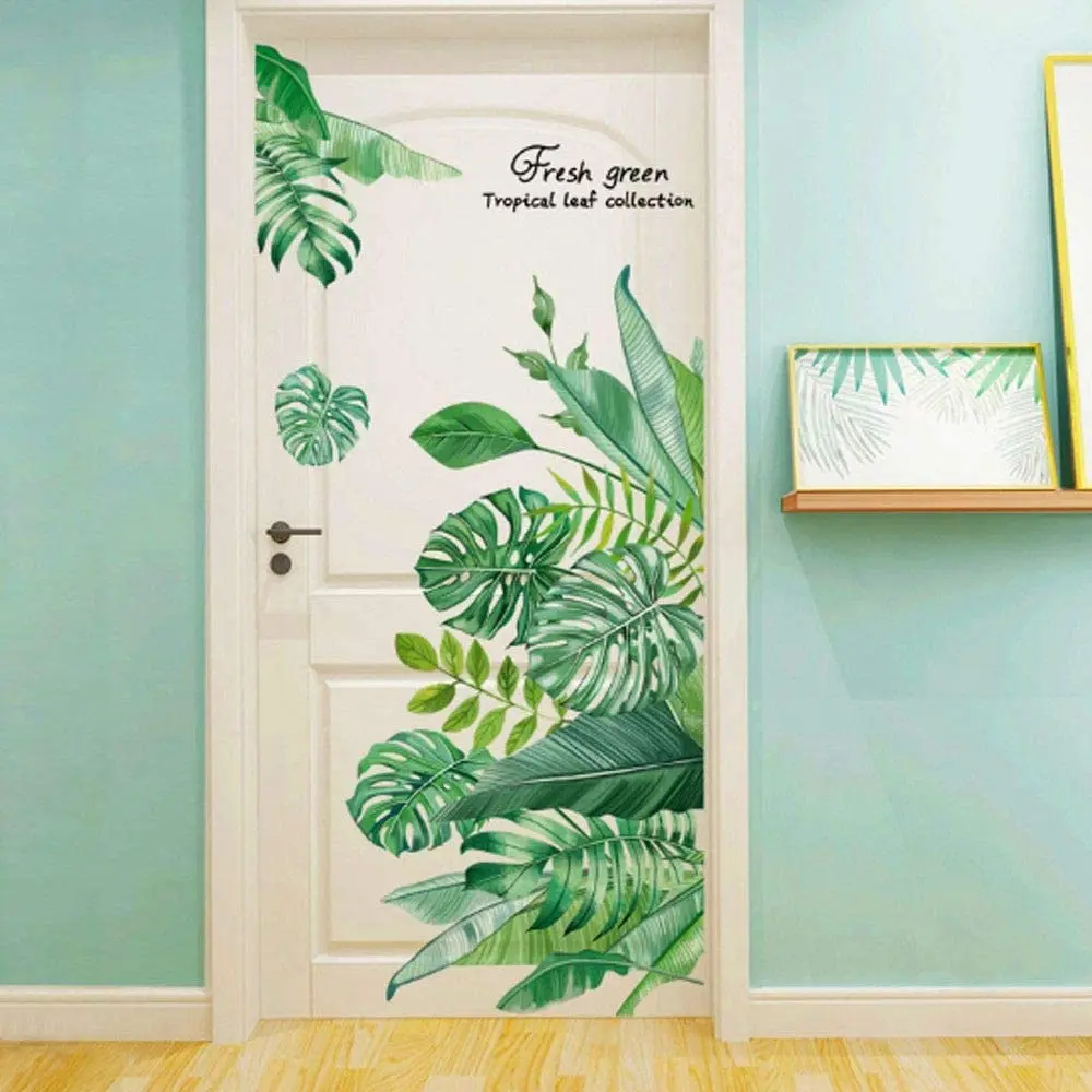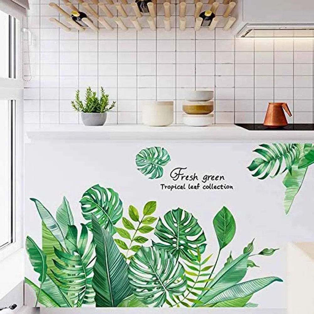 Зеленый тропический лист, украшение для стен, Тропическое растение, зеленый лист, наклейка на стену, украшение для гостиной, спальни, украшение на стену, украшение для кухни, офиса, девушки, наклейка на стену, водонепроницаемая, сделай сам, украшение на стену