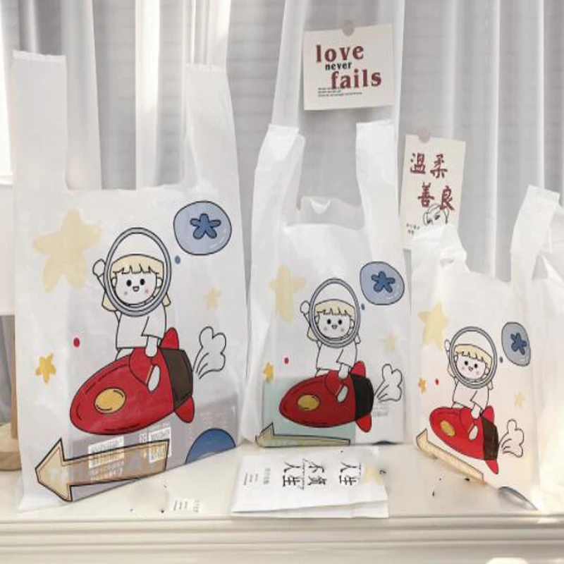 Оптовая продажа, модная Милая пластиковая сумка-тоут для девочек, рекламная упаковка для супермаркетов, пирожные закуски, детская одежда, пластиковая сумка для покупок B750D