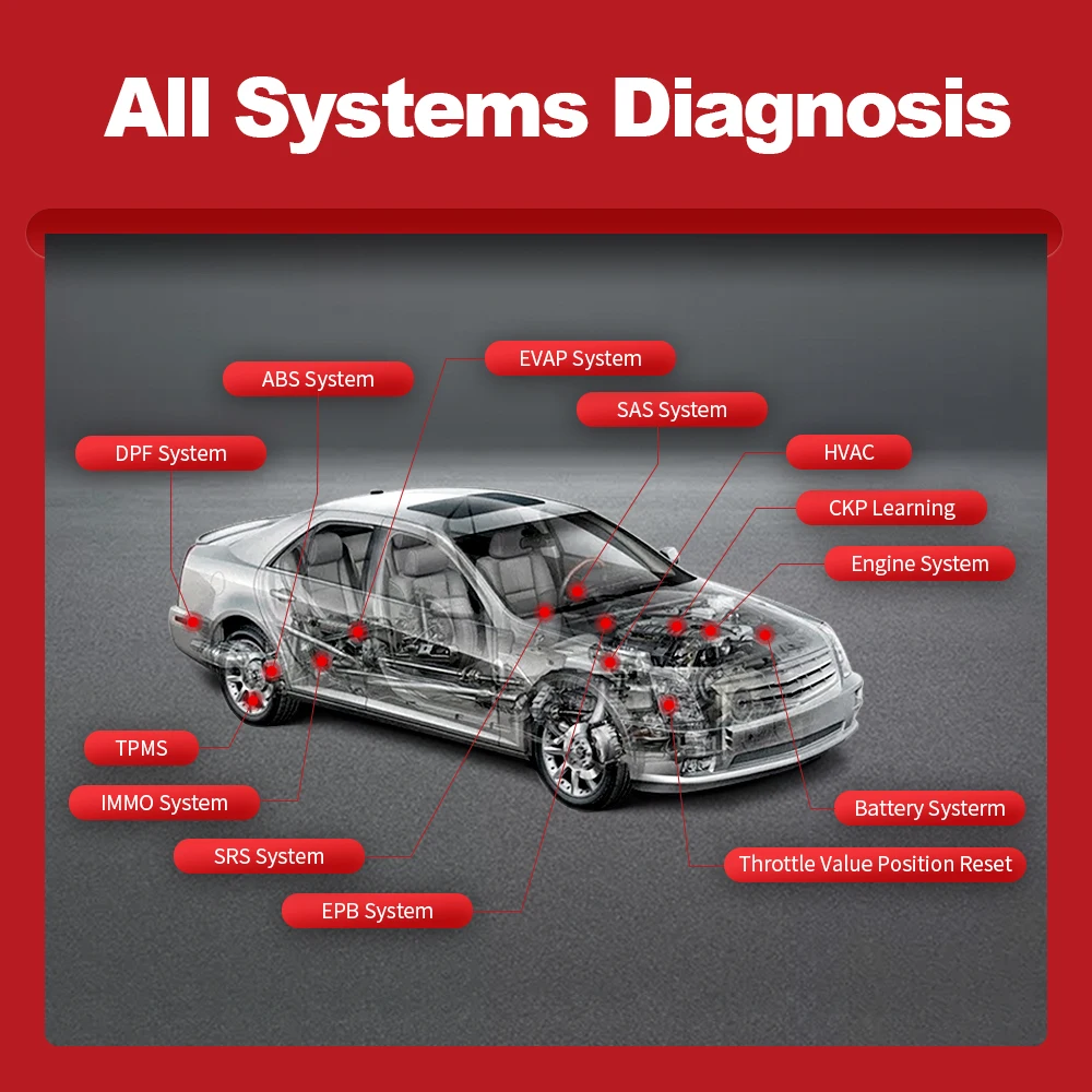 Thinkdiag может диагностировать электронную систему управления преобладающими моделями транспортных средств, охватывающих азиатские, европейские, американские и китайские. Полный спектр моделей автомобилей и полная автомобильная система диагностики делают itaprofessional автомобильный диагностический инструмент. Включает: системы ABS, системы двигателя, системы SAS, системы TPMS, системы IMMO, системы батареи, системы обслуживания масла, системы SRS, и т. Д... Функции диагностики включают в себя: чтение DTCs, четкие DTCs, чтение datastream, испытание на приведение в действие, кодирование ECU и 16 специальных функций и т. Д.