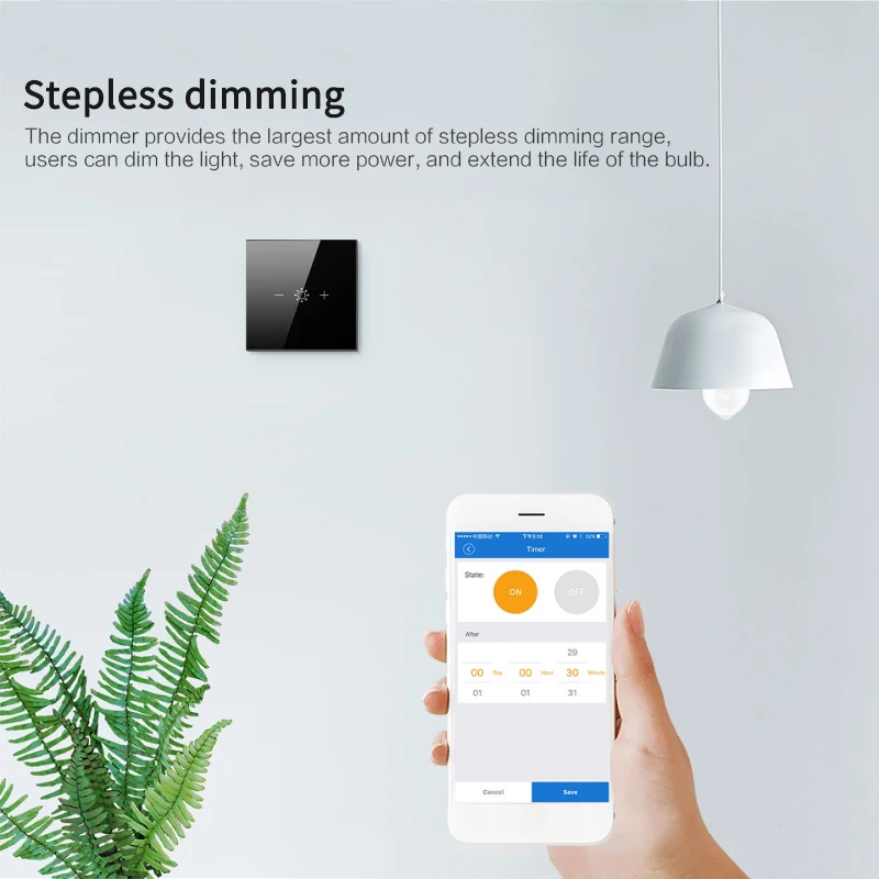 02. Бесконечное затемнение поддерживает только светодиодный светильник и вольфрамовые лампы. Не поддерживает лампы накаливания. Пожалуйста, подтвердите, поддерживает ли светильник затемнение перед покупкой