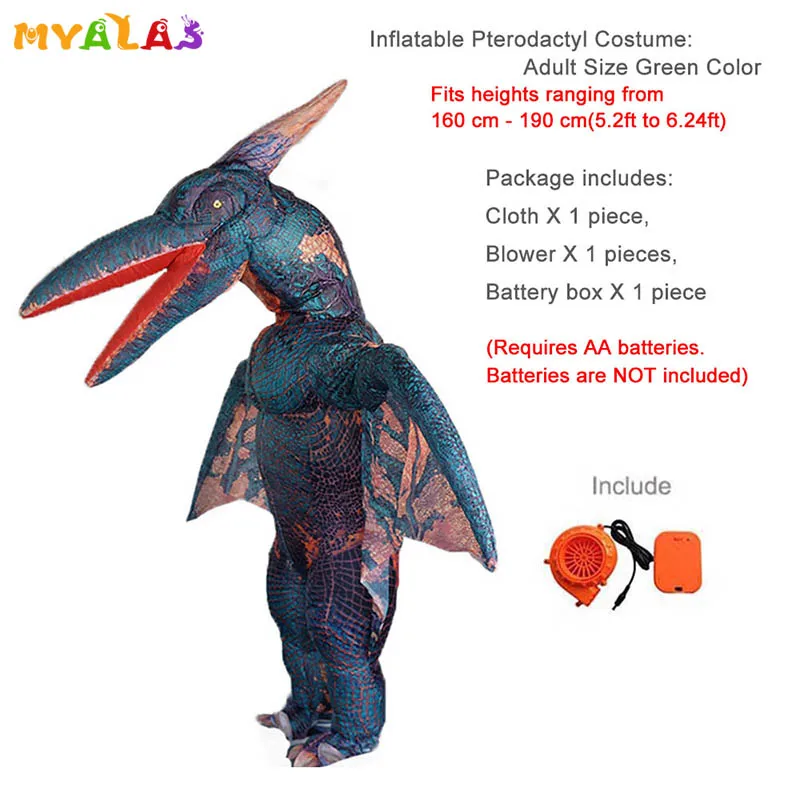Полноразмерный надувной костюм Pterodactyl: зеленый цвет Размер: подходит для высоты от 1,60 м до 1,90 м (от 5,08 фута до 6,24 фута)