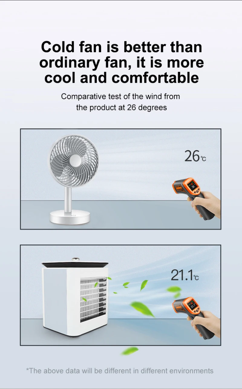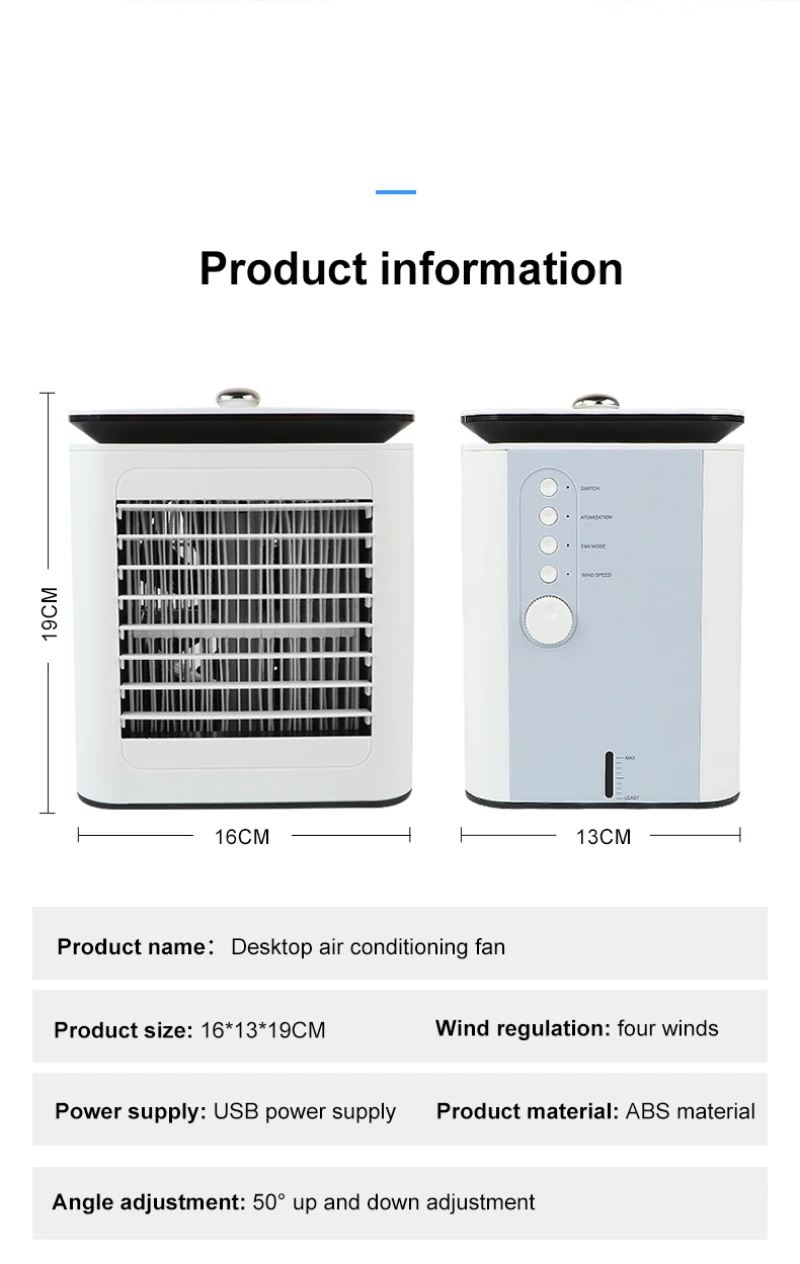 2. air conditioner fan can be used as an desktop fan. After adding water to the water tank, it can also be used as an air cooler fan. You can feel more cool and fresh wind coming out.