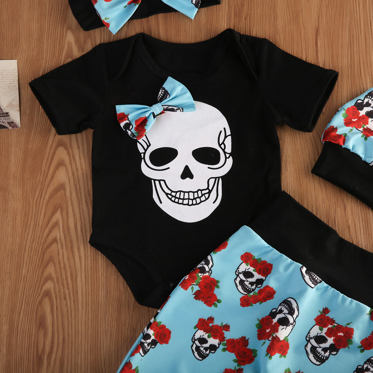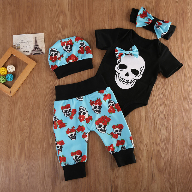 Новое поступление, Одежда для новорожденных девочек, комбинезон, комбинезон, боди, длинные штаны, комплект одежды, Череп, призрак, детская одежда на Хэллоуин