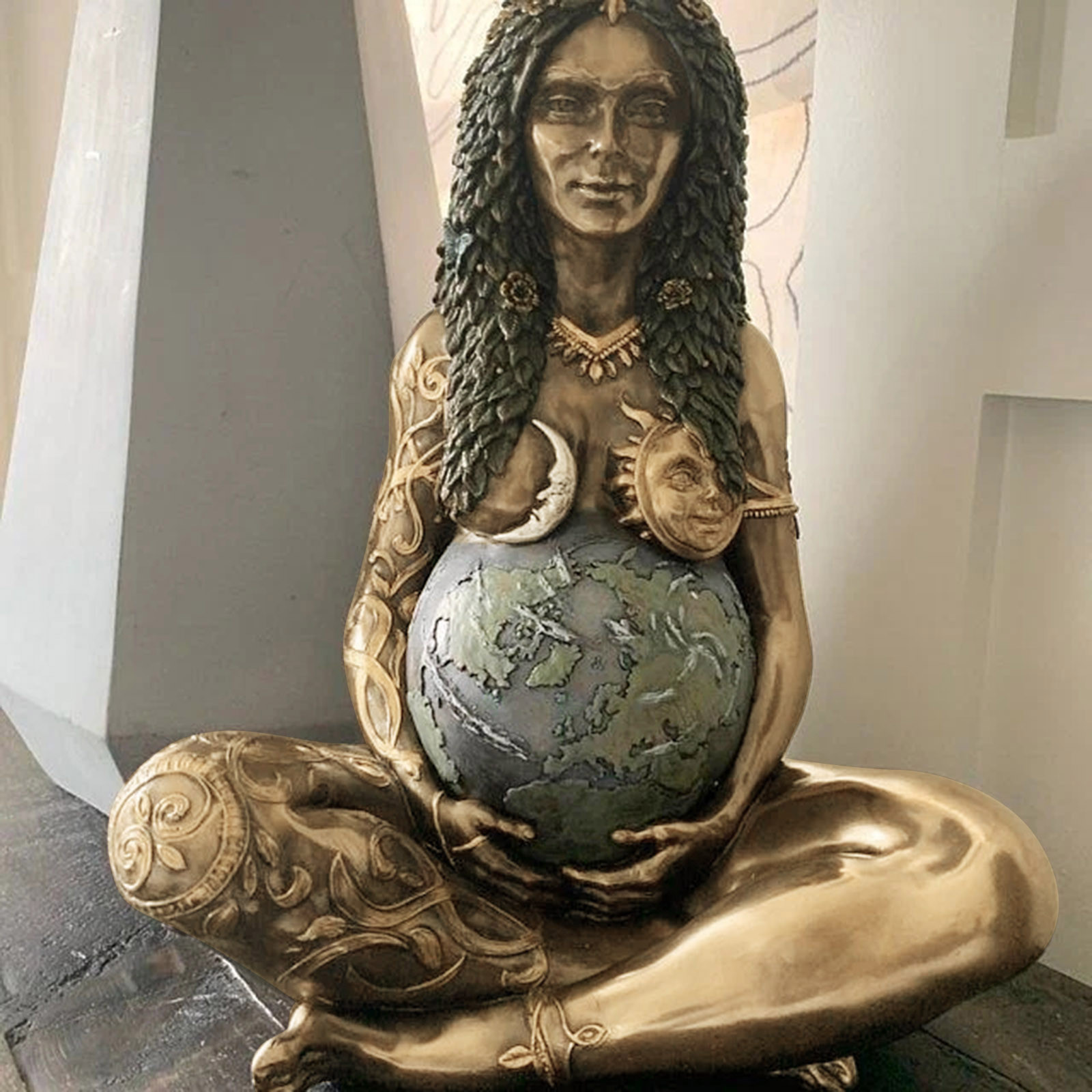 Художественная Статуя Матери-Земли Все в наличии, мать-Земля отдыхает, поддерживая мир как беременную Живот между украшенными руками.
