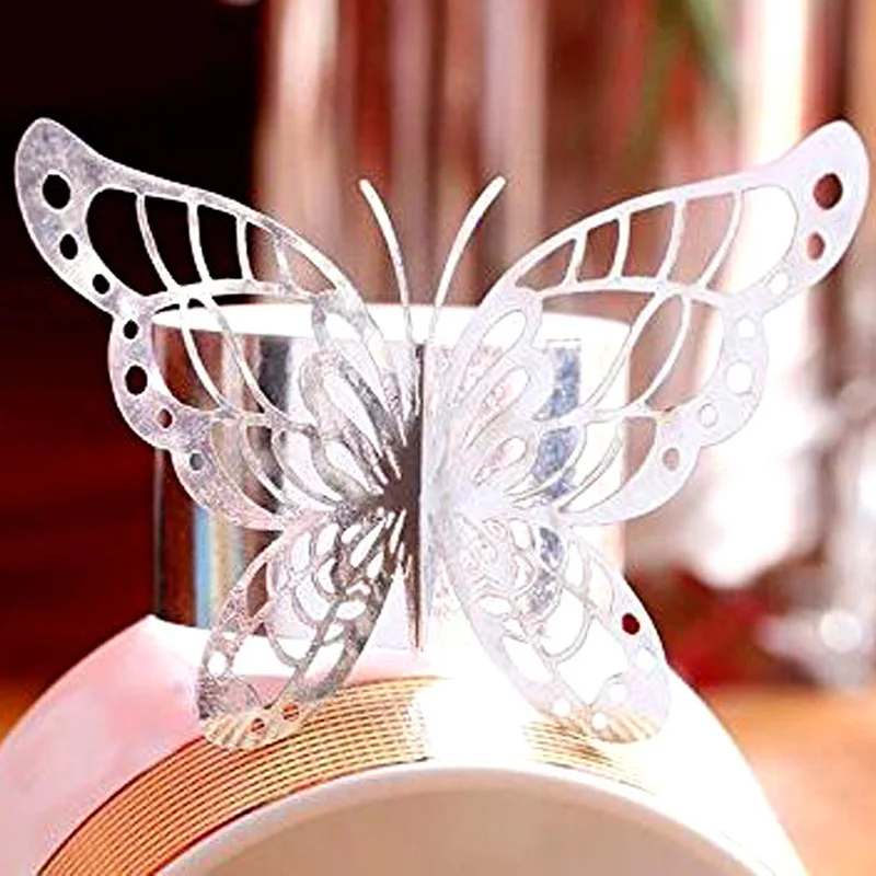 50 шт бабочка Лазерная резка кольцо для бумажных салфеток держатели для салфеток Пряжка для салфеток Свадебные банкетные ужин рождественские домашние вечерние украшения стола