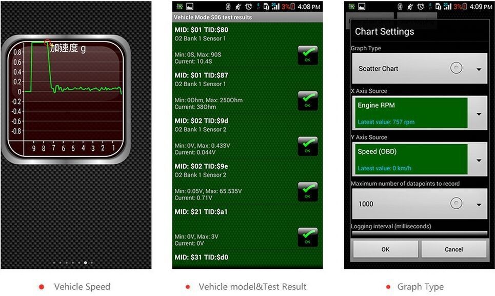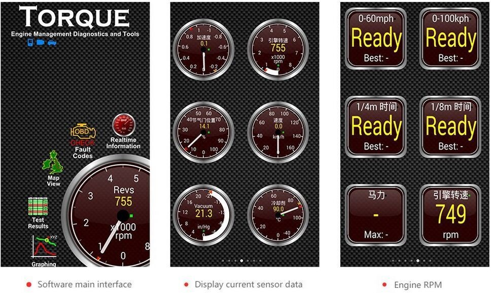 * Отображение рабочих характеристик автомобиля в режиме реального времени, таких как momentum,