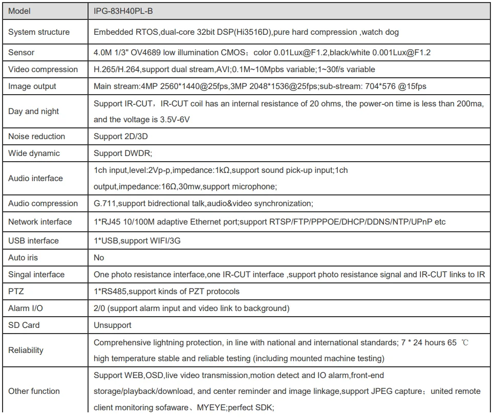 Поддержка ONVIF; Поддержка сторонних вечерние NVR;