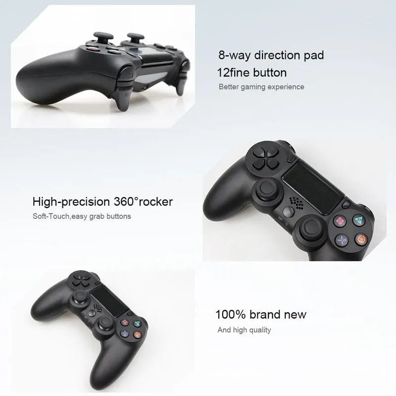 Поддержка подключения Bluetooth PS4. Высокочувствительная шестиосевая система обнаружения с естественно интуитивно понятной сенсорной панелью на передней части контроллера обеспечивает богатый игровой опыт. Мы разработали 2 вибромотора для этого геймпада, чтобы вы могли испытать радость от игры лучше! Сильные вибрационные отзывы для персонального игрового опыта, пусть игрок чувствует, что они на поле битвы.