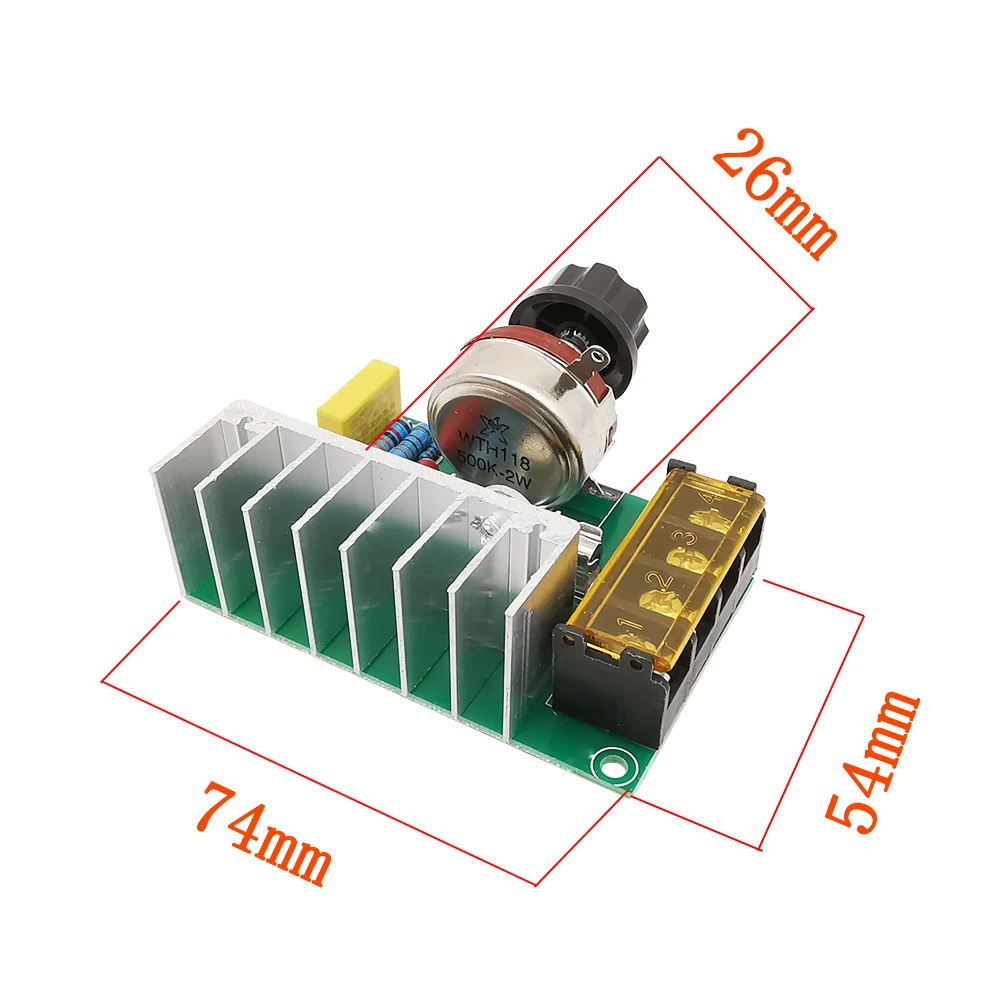 Примеры использования: нагревание электрических печей и водонагревателей, затемнение ламп и фонарей, регулирование скорости небольших двигателей, регулировка температуры электрических утюгов, регулирование напряжения импортных приборов 110 В (220 В до 110 В) и т. Д. Для достижения регулирования температуры, затемнения, регулирования скорости, эффекта регулирования давления. Мощность нагрузки: 4000 Вт. Он используется для больших, средних и малых приборов. Так как мощность уже очень большая, достаточно обычных бытовых приборов или небольших заводов (мощность индуктивных или емкостных нагрузок должна быть уменьшена). Аккуратно поверните крышку ручки, она может быть гибко отрегулирована без добавления каких-либо компонентов, продукт практичен и удобен.