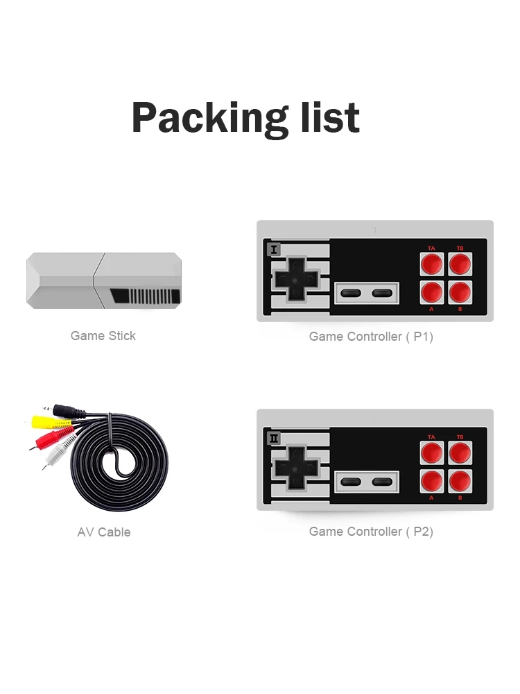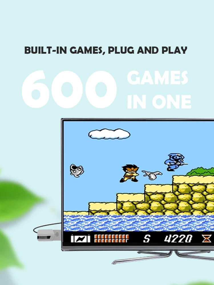 Улучшенная версия дизайна делает два геймпада более выразительными и щедрыми, придавая ретро-ощущение. Эта игровая консоль встроена в 600 не повторяющихся классических игр! Обновите игру первого поколения игровых контроллеров. Если вы чувствуете, что повторные игры вас беспокоят, пожалуйста, не стесняйтесь выбирать их!