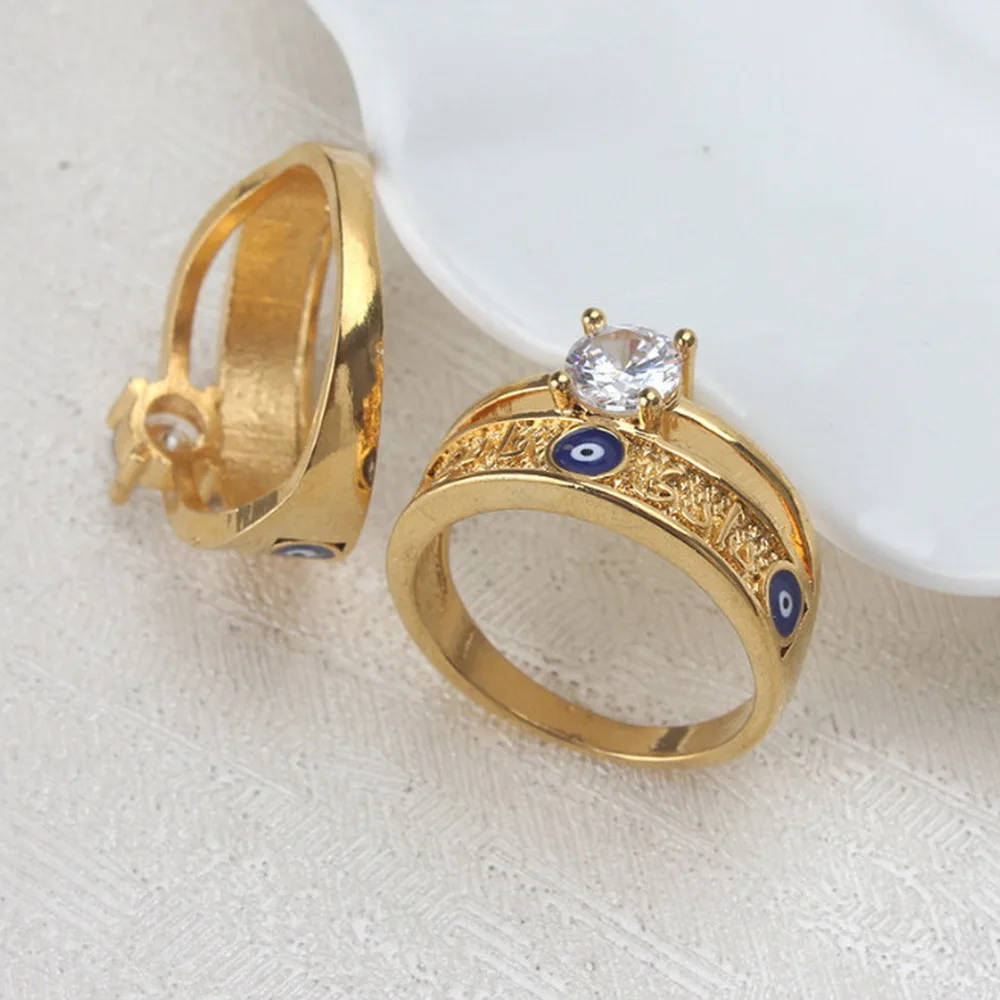 Женское кольцо с голубым эмалью, позолота, кубический цирконий, сглаза, недорогие Милые простые турецкие Модные Винтажные медные ювелирные изделия