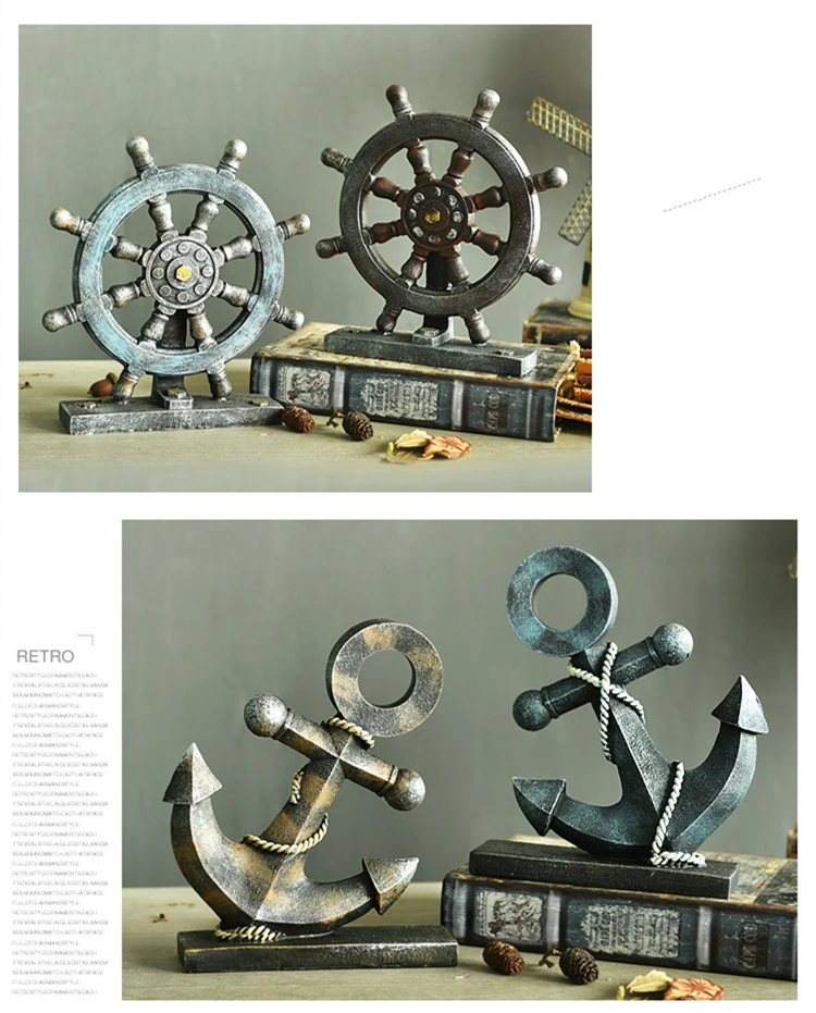Примечания: если вы получили посылка сломана, пожалуйста, не открывайте спор и не оставляйте негативные отзывы, пожалуйста, сначала свяжитесь с нами, мы разберемся с этим, не волнуйтесь! Размеры: якорь: 17,5*22,5 см/6,9*8,9 дюймов Руля: 23*23,5 см/9,1*9,2 дюймов Колесо передач: 28*20 см/11,0*7,9 дюймов Парусник: 27*25 см/10,6*9,8 дюймов Цвет: коричневый, синий Стиль: фигурки в морском стиле, винтажный домашний декор, орнамент Материал: смола Использование: для дома, для магазинов Посылка в комплекте: фигурки * 1 шт.