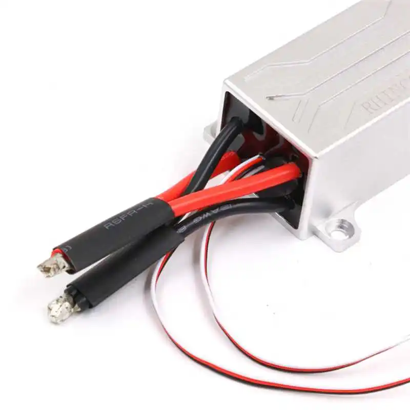 ESC поставляется с выходом BEC 5V5A, BEC с магнитным кольцом для защиты от помех;КрасныйПоложительный, черный-отрицательный, а белый-сигнальная линия; Если пользователь использует один чип для управления и не требует напряжения 5 В, только черно-белые линии.