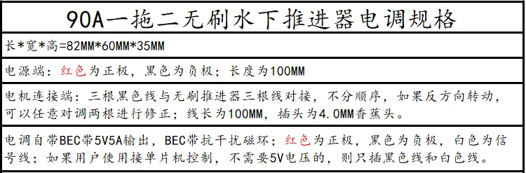 90A один буксир два бесщеточных подводных пропеллера ESC параметры