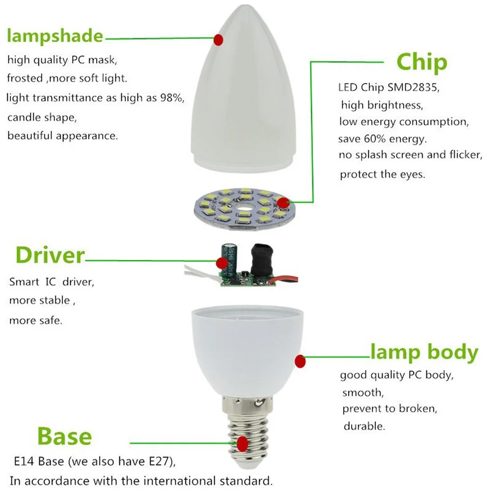 10 шт. светодиодный светильник 3 Вт свеча E14 E27 E12 B22 B15 85-265 в Chandlier лампа Ampoule Bombillas заменить галогенные лампы 20 Вт
