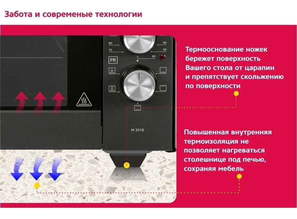 Описание Мини-печь Simfer M3516/М3501/М3504 Classic, 5 режима работы, конвекция, 2 противня