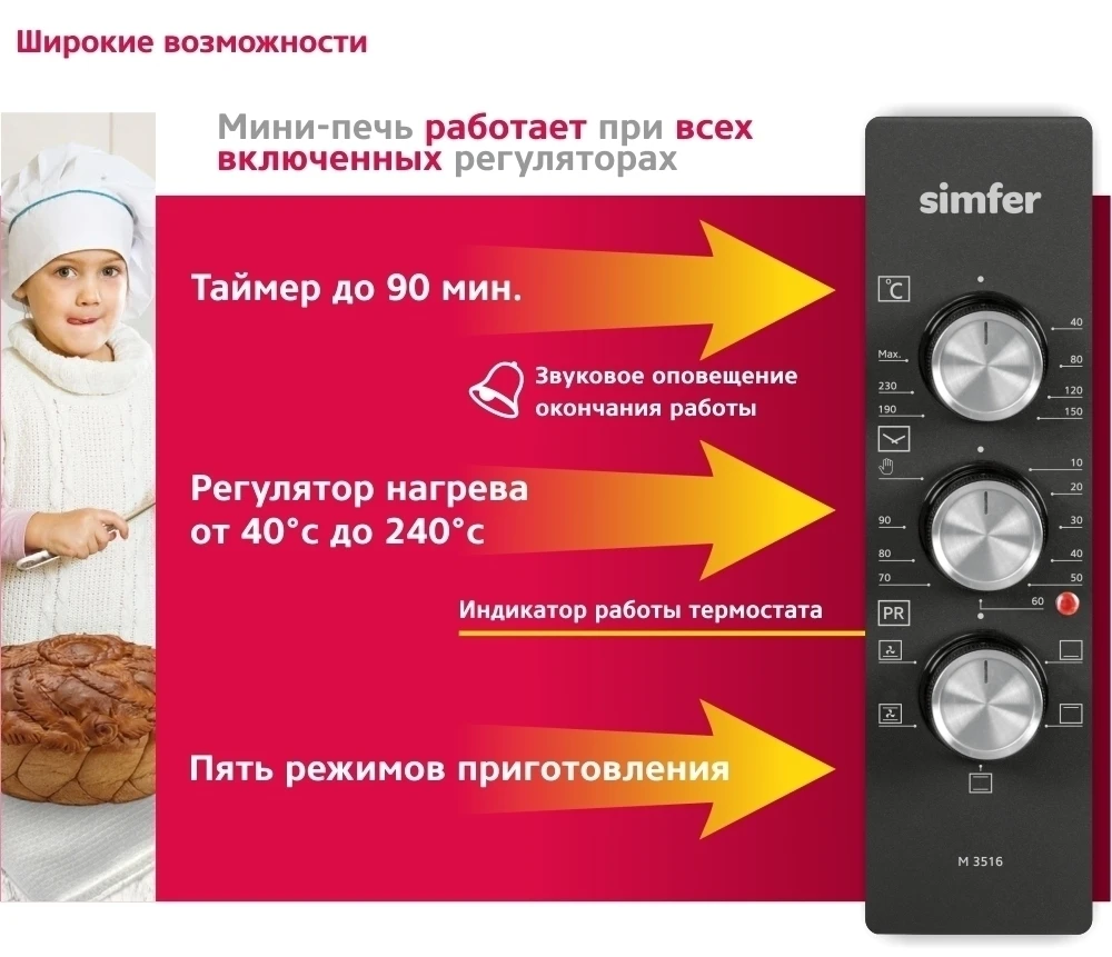 Электрическая Мини печь Simfer - экспериментируйте в приготовлении разнообразных блюд и радуйте себя и своих близких!
