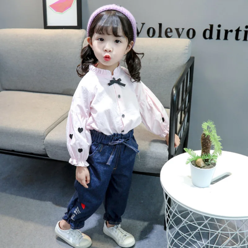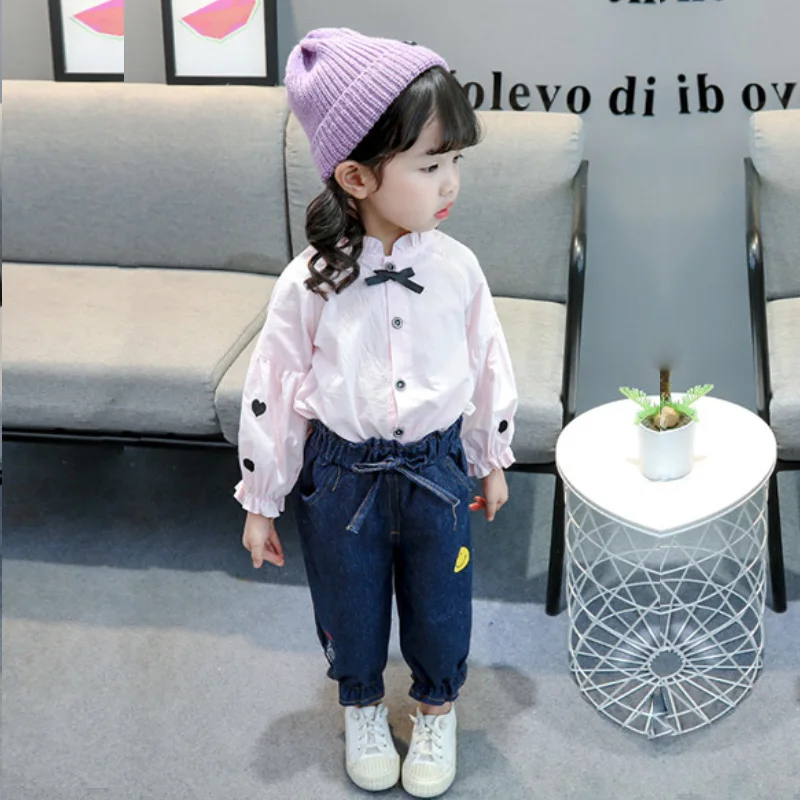 От 1 до 5 лет Одежда для девочек весенне-осеннее пальто-кардиган с кукольным воротником + джинсы новая корейская модная качественная детская одежда