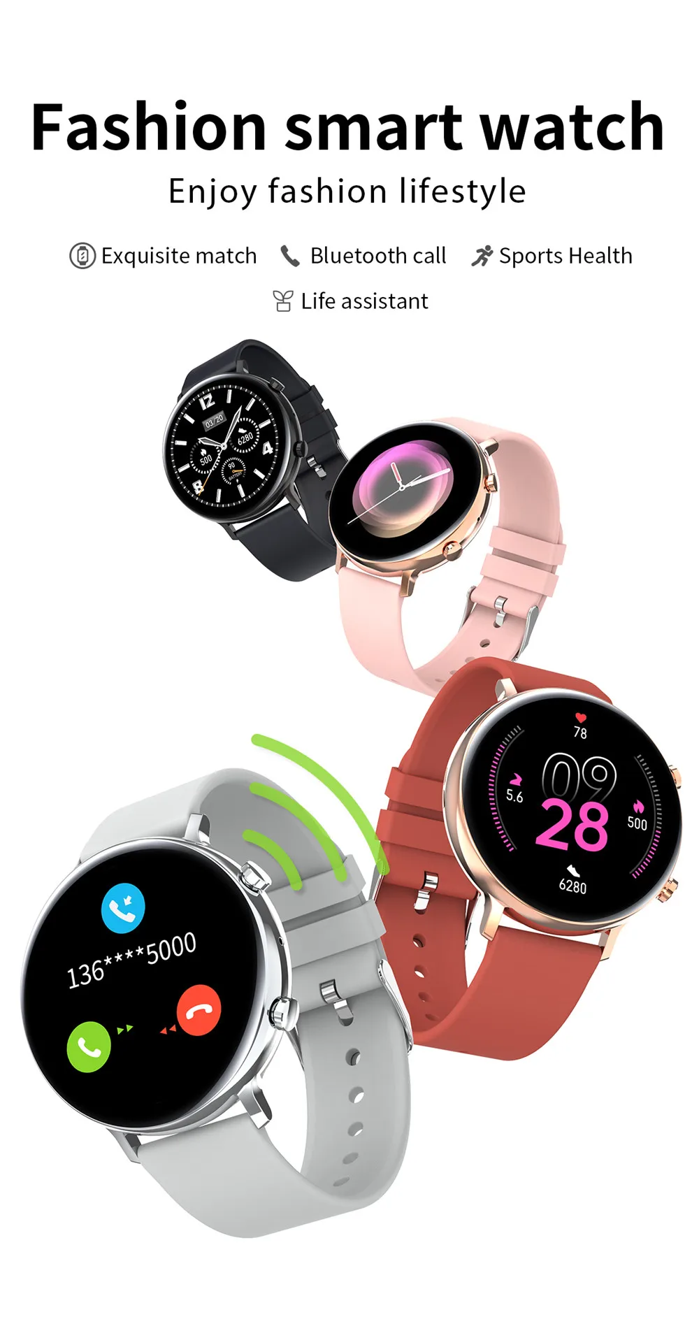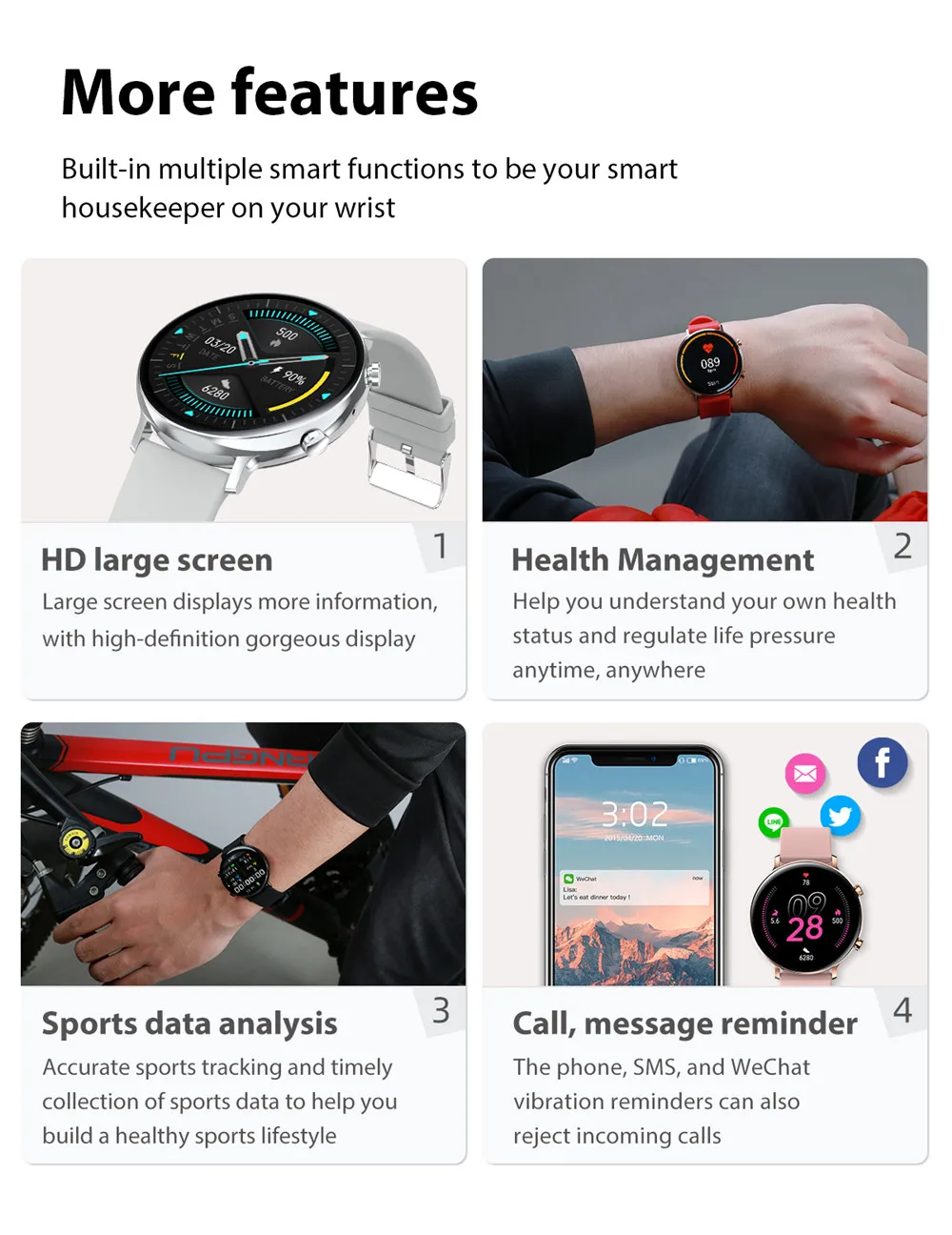 Смарт-часы для мужчин и женщин, 360*360 Разрешение сердечного ритма крови Давление монитор 1,3 дюймов Спорт Водонепроницаемый Smartwatch для IOS и Android