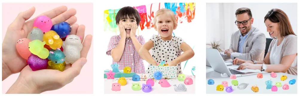 Особенности 1. Легко мыть и чистить 2. Размеры: различные от 1,5-2,5 ''по длине 3. Мягкая текстура, Отличное ощущение прикосновения и зрения 4. TPR материал, 100% нетоксичный и безопасный Лучшие подарки 1. Подарки на день Святого Валентина, подарки на Хэллоуин, подарки на день благодарения, рождественские подарки, пасхальные подарки для девочек и мальчиков 2. Дети дружелюбные кавайные Приседания 3. Продвижение детей друзей 4. Развивайте цветовое познание детей 5. Искра детского воображения и творчества Игрушки для снятия стресса 1. Mochi squishy как префект игрушки для снятия стресса, тревожные игрушки, уменьшить беспокойство и Увеличить Фокус. 2. Если на вас давят, принимайте приседания животных, отпускайте свое тело и настроение. 3. Расслабьтесь при сжимании животных мочи!