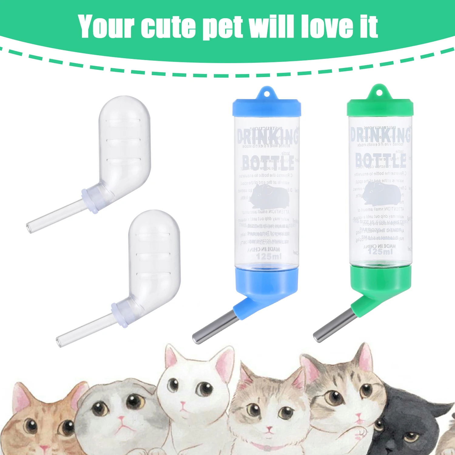 Конструкция бутылки для воды делает воду проходящей только тогда, когда маленькое животное сосет на соломе, поэтому вам не нужно беспокоиться о том, что бутылка для воды будет дренажной во время подвешивания.